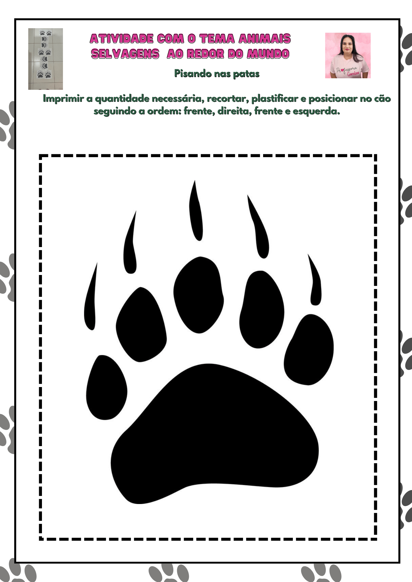 - Arte com Pegadas: Utilizar carimbos de pegadas de animais para criar uma obra de arte coletiva, incentivando a colaboração e a criatividade.