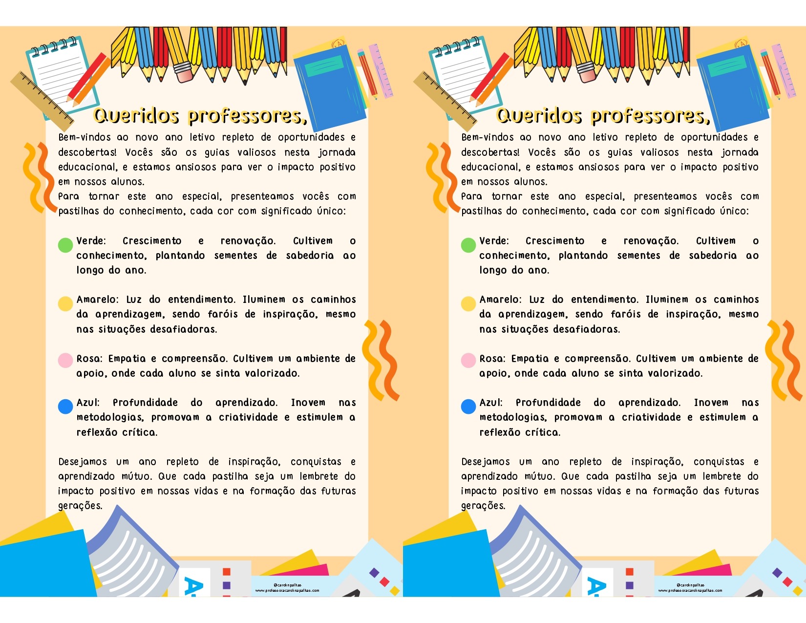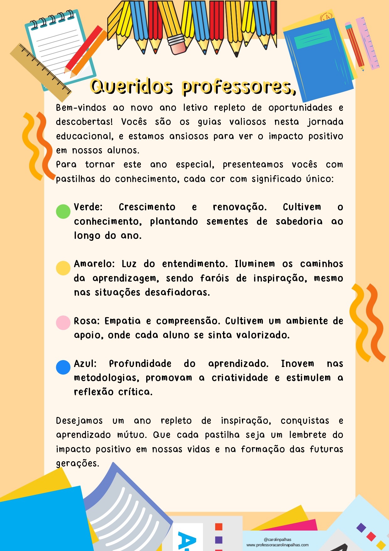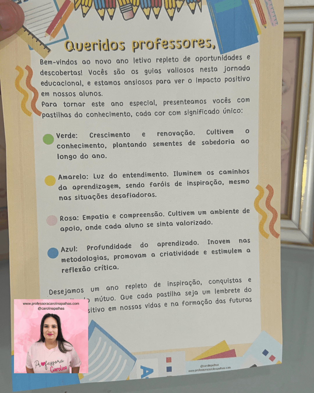 Portanto, ao distribuirmos esses cartões lembrança, não estamos apenas cumprindo um ritual, mas estamos investindo no alicerce de um ano letivo repleto de realizações, aprendizado e crescimento. Que esses gestos de apreço sirvam como um lembrete constante de que a educação é uma jornada compartilhada, onde cada professor desempenha um papel fundamental na construção de um futuro brilhante para todos.