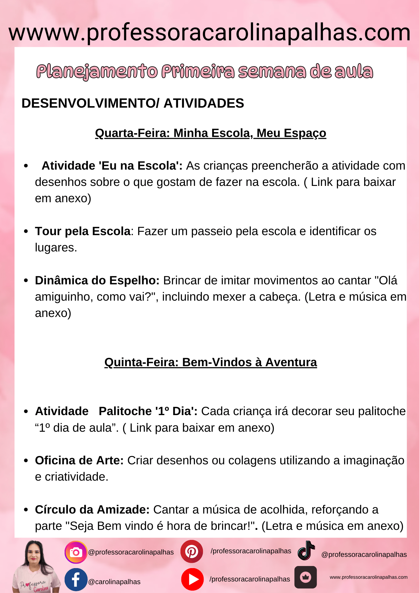 Quinta-feira: Canções e Comemorações Neste dia, celebramos com a música inédita “Bem-vindos, Amiguinhos”, uma canção que irá ecoar pelas salas e corredores, enchendo o ambiente de alegria e boas-vindas. Faça o download aqui.