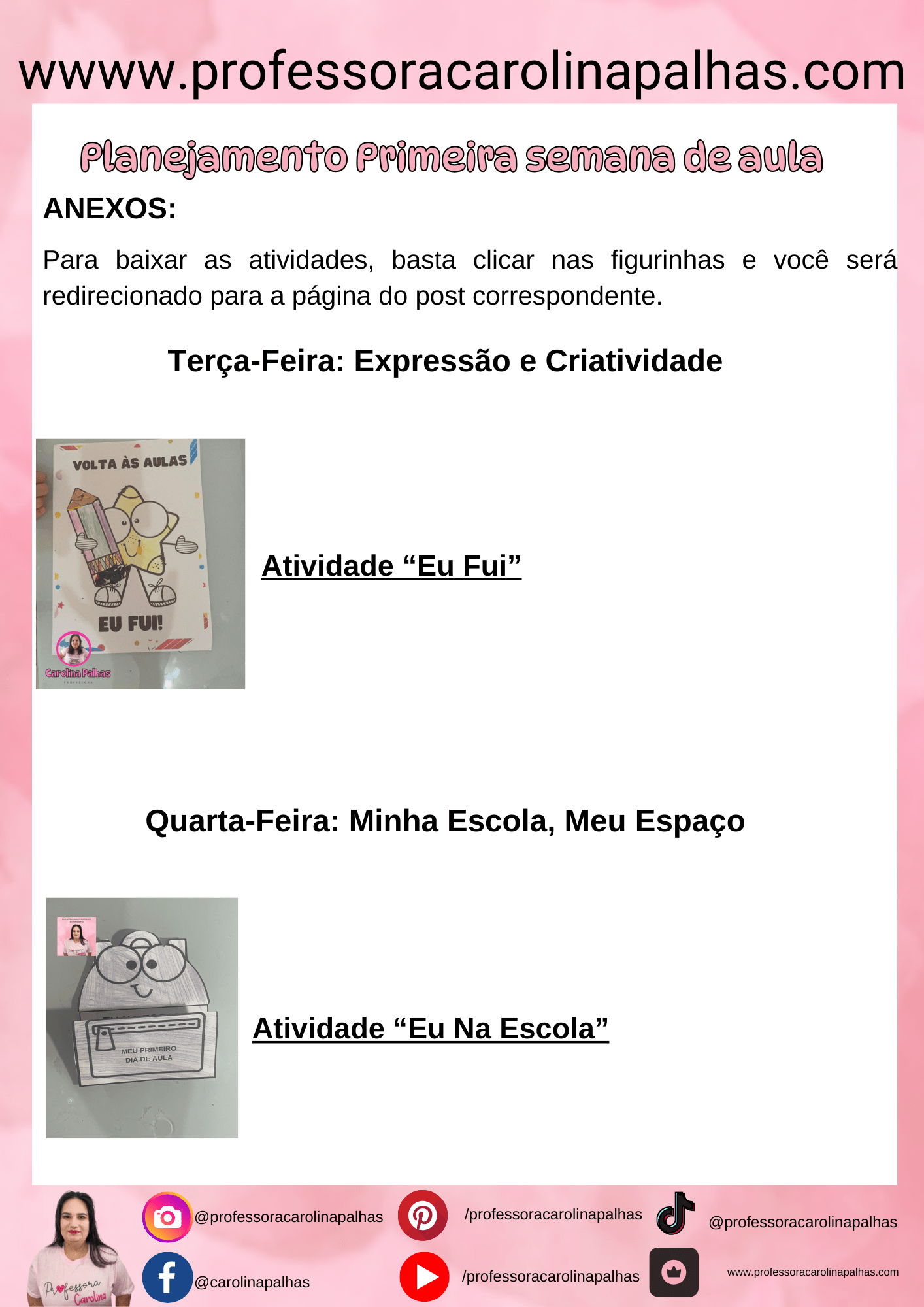 Quarta-feira:Atividade ‘Eu na Escola’: As crianças preencherão a atividade com desenhos sobre o que gostam de fazer na escola.Acesse aqui para baixar.