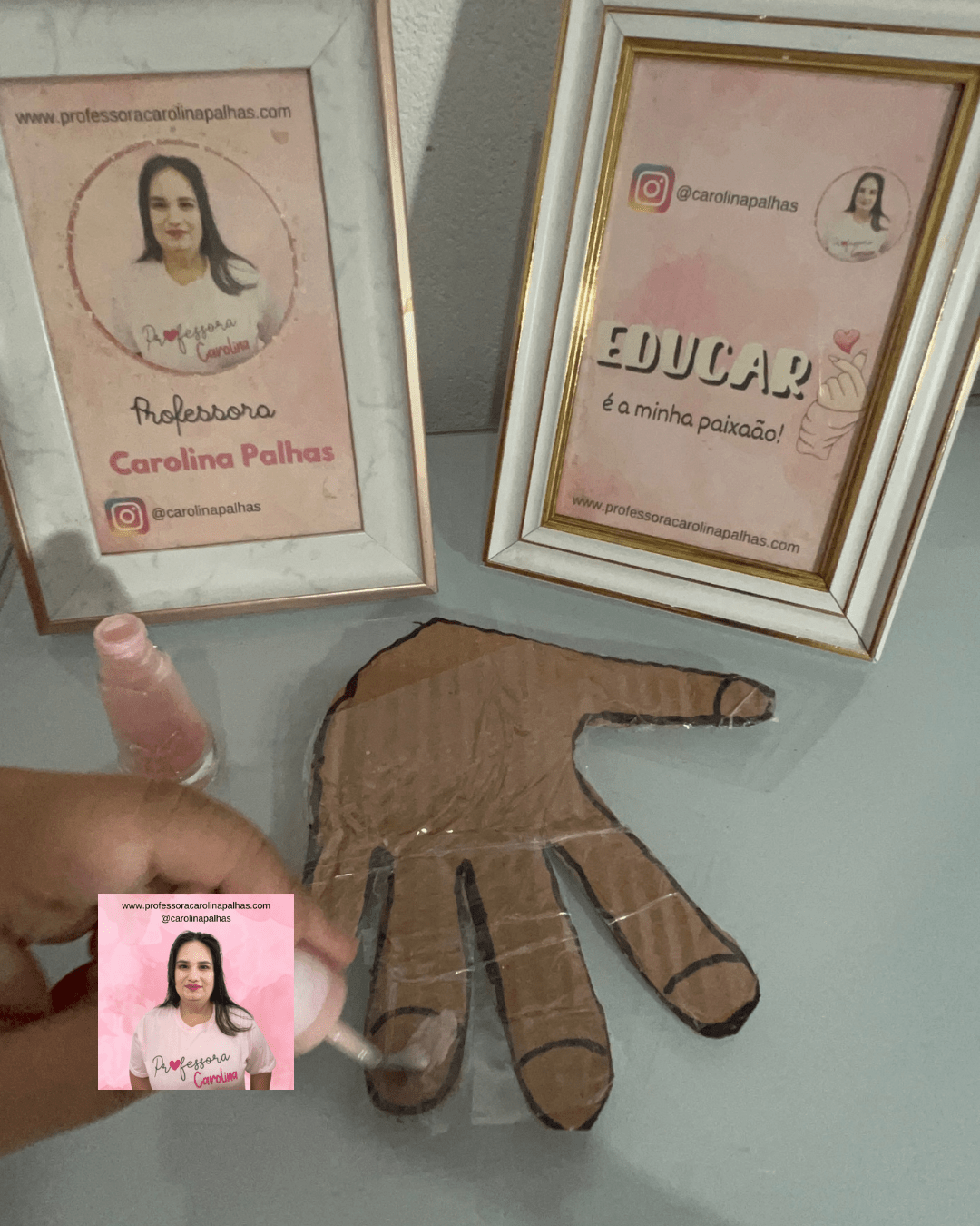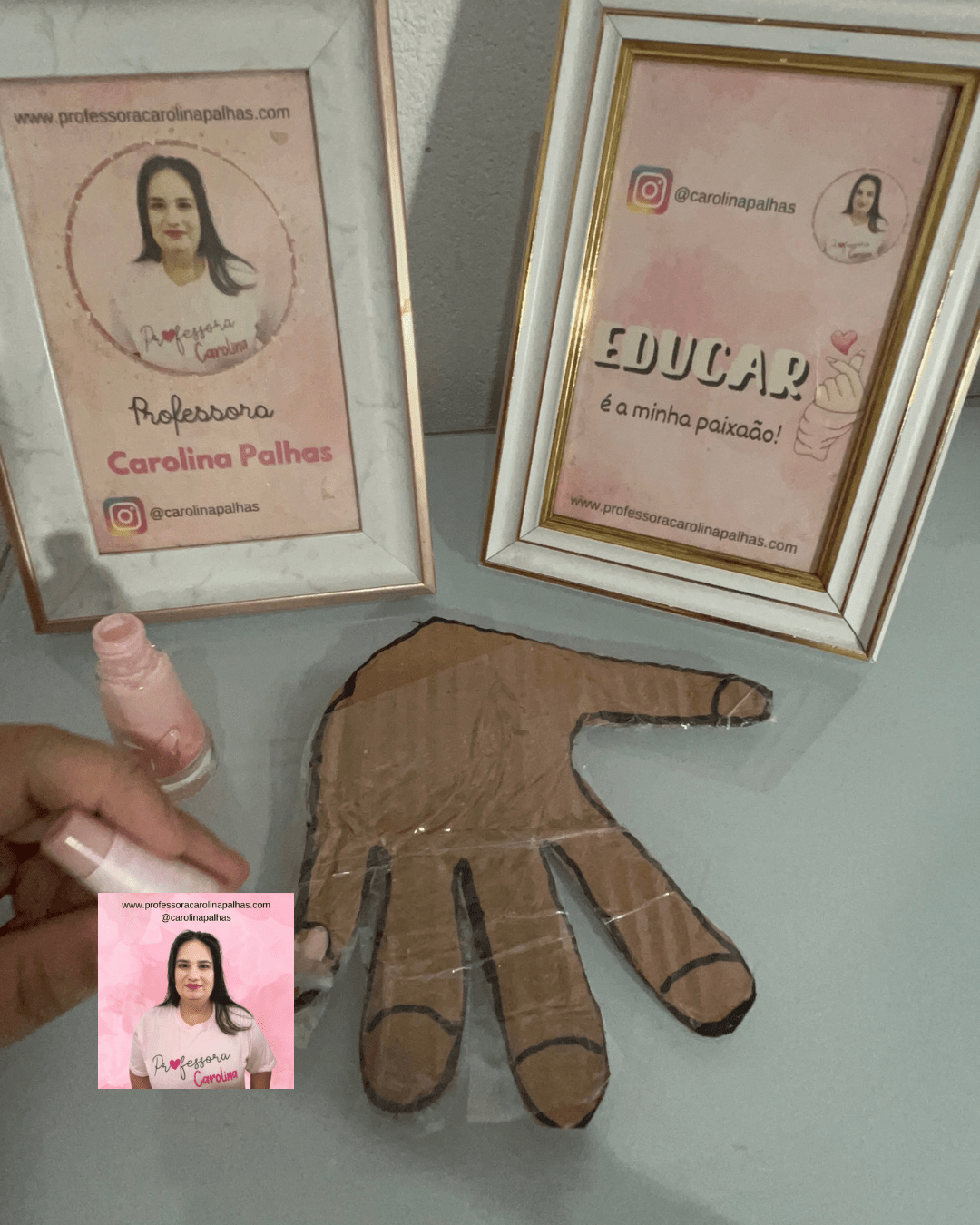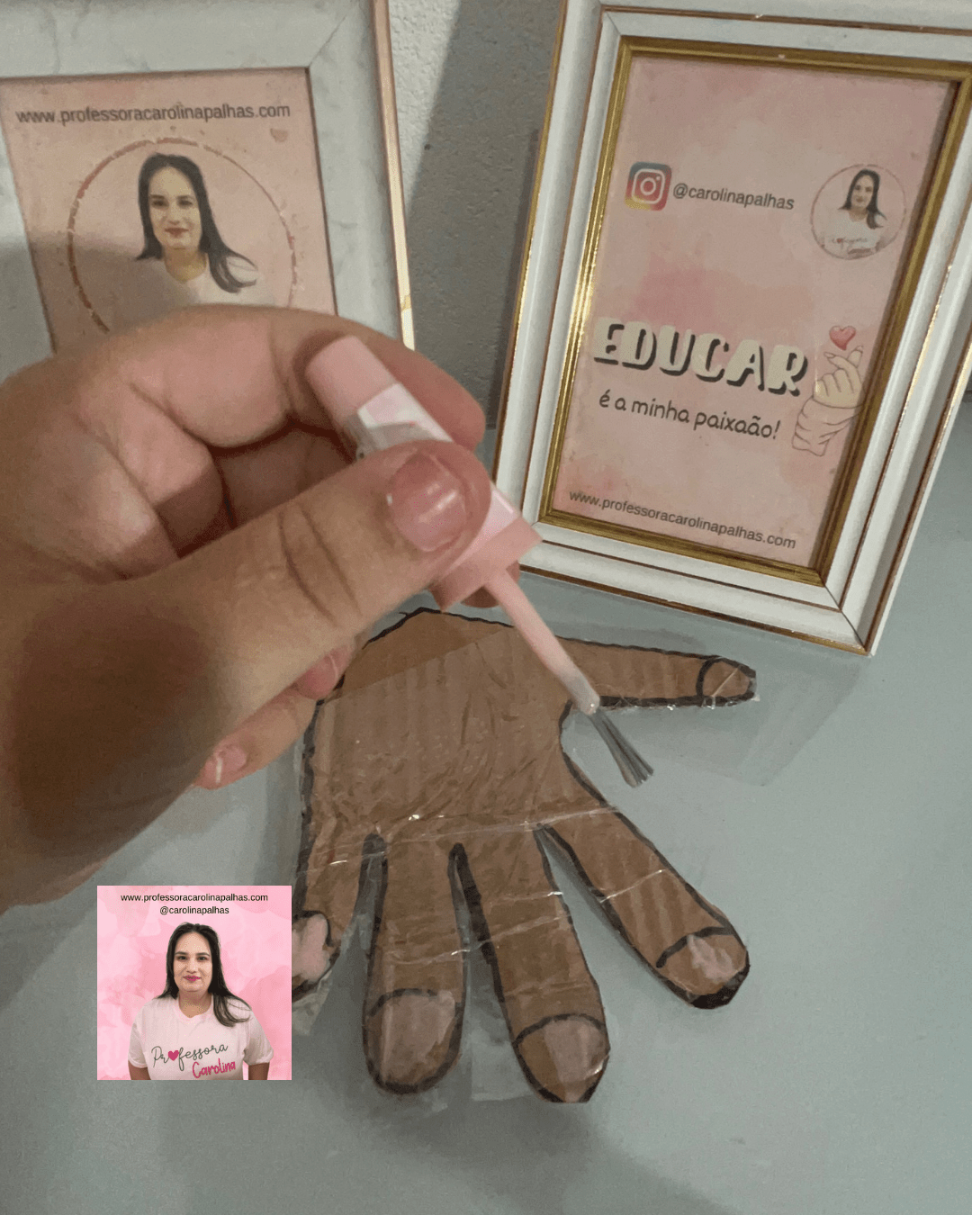 Na atividade de hoje, embarcaremos em uma experiência lúdica e educativa: Brincando de Manicure! A proposta é simples, mas os benefícios são imensuráveis. Vamos começar fazendo o contorno da mão de cada criança no papelão, recortar e plastificar para que possamos reutilizar diversas vezes.