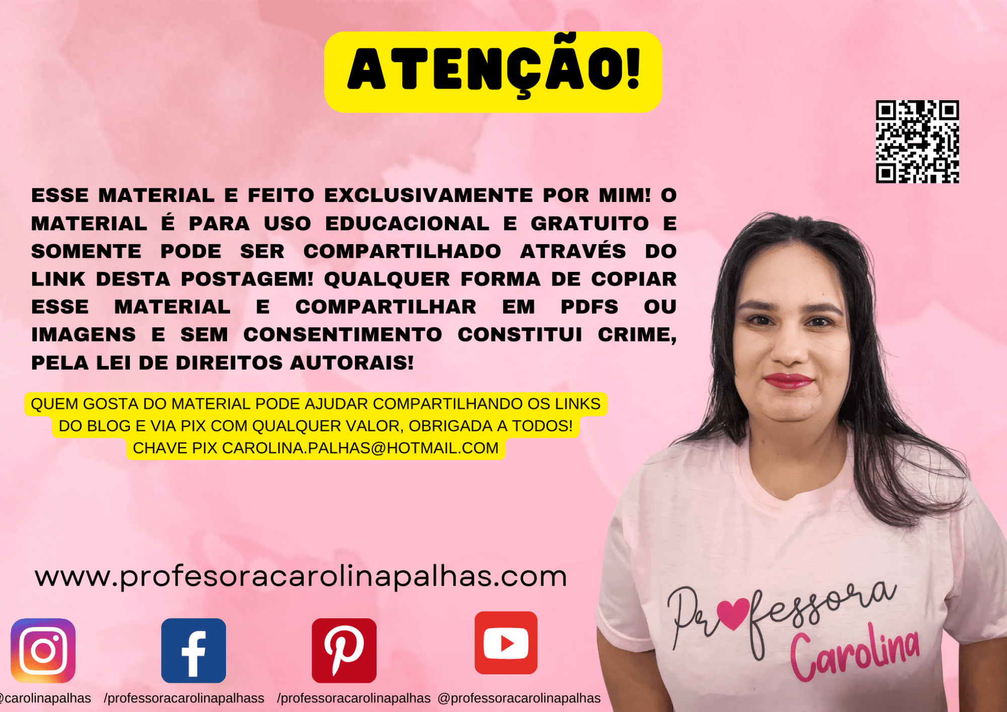 Valorizo profundamente o conteúdo educacional que crio e compartilho, visando sempre inspirar e educar de forma gratuita. Se você gosta do que faço e deseja apoiar minha missão de fornecer recursos educativos de qualidade, considere fazer uma doação através do PIX: [email protected]. Sua contribuição é muito apreciada e me ajuda a continuar criando e compartilhando.