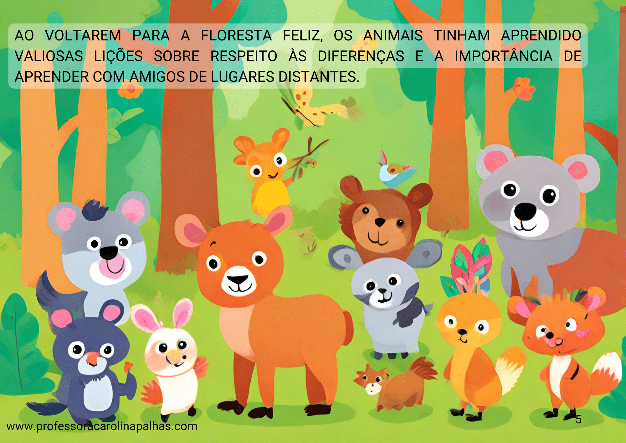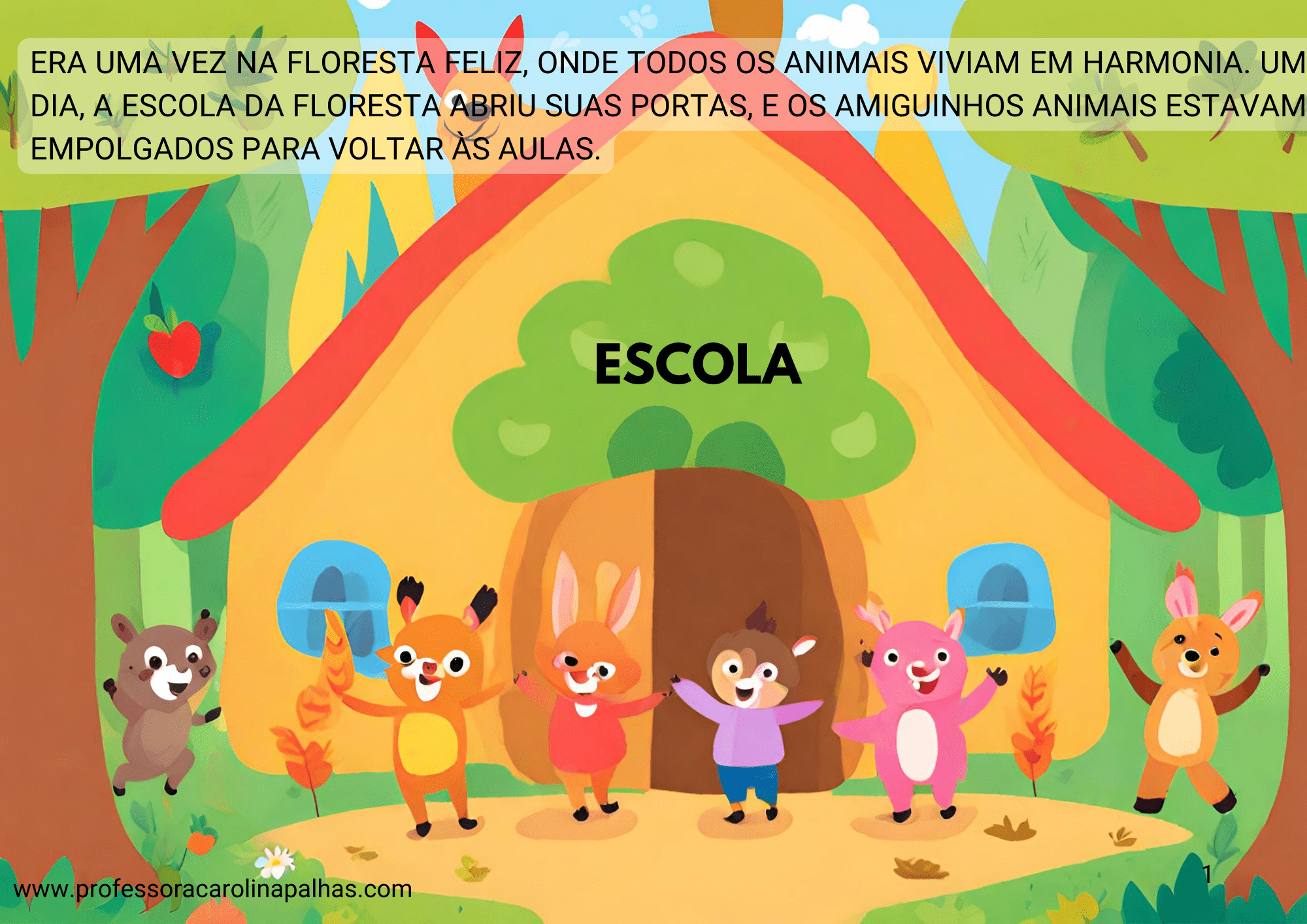 Título: “O Primeiro Dia de Aula na Floresta Alegre: Aventuras Selvagens com Amigos Animais”