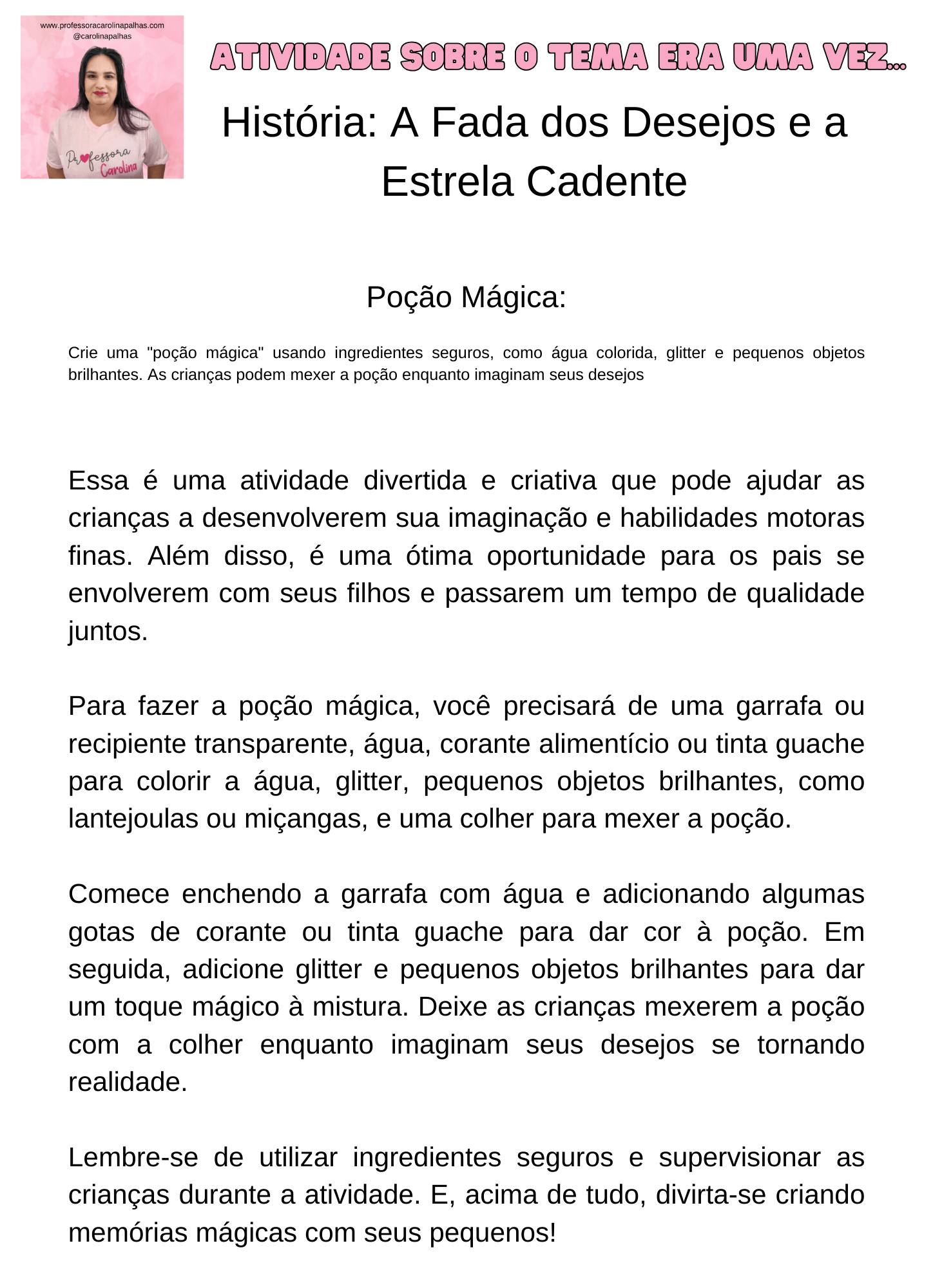 Preparamos uma seleção especial de atividades que trazem a história da “Fada dos Desejos e a Estrela Cadente” à vida, incluindo: