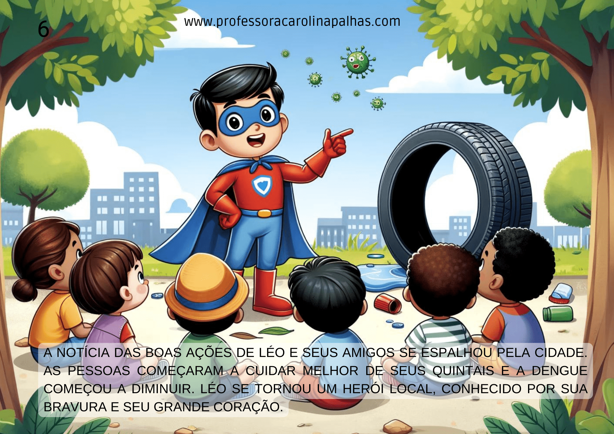 Nesta narrativa encantadora, acompanhamos Léo, um pequeno herói com uma grande missão. Com sua capa vermelha e um coração corajoso, Léo enfrenta os mosquitos da dengue para manter sua comunidade segura e saudável. É uma história que traz não só entretenimento, mas também ensinamentos valiosos sobre saúde e prevenção.