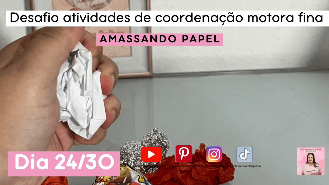 Estamos prestes a mergulhar na Atividade 24\30 do nosso Desafio de 30 Dias para Estimular a Coordenação Fina na Educação Infantil! 🚀👧🏻 Eu sou Carolina Palhas, professora de informática e da educação infantil, e é uma alegria compartilhar mais uma atividade incrível com vocês: Amassando Papel! 📜✨