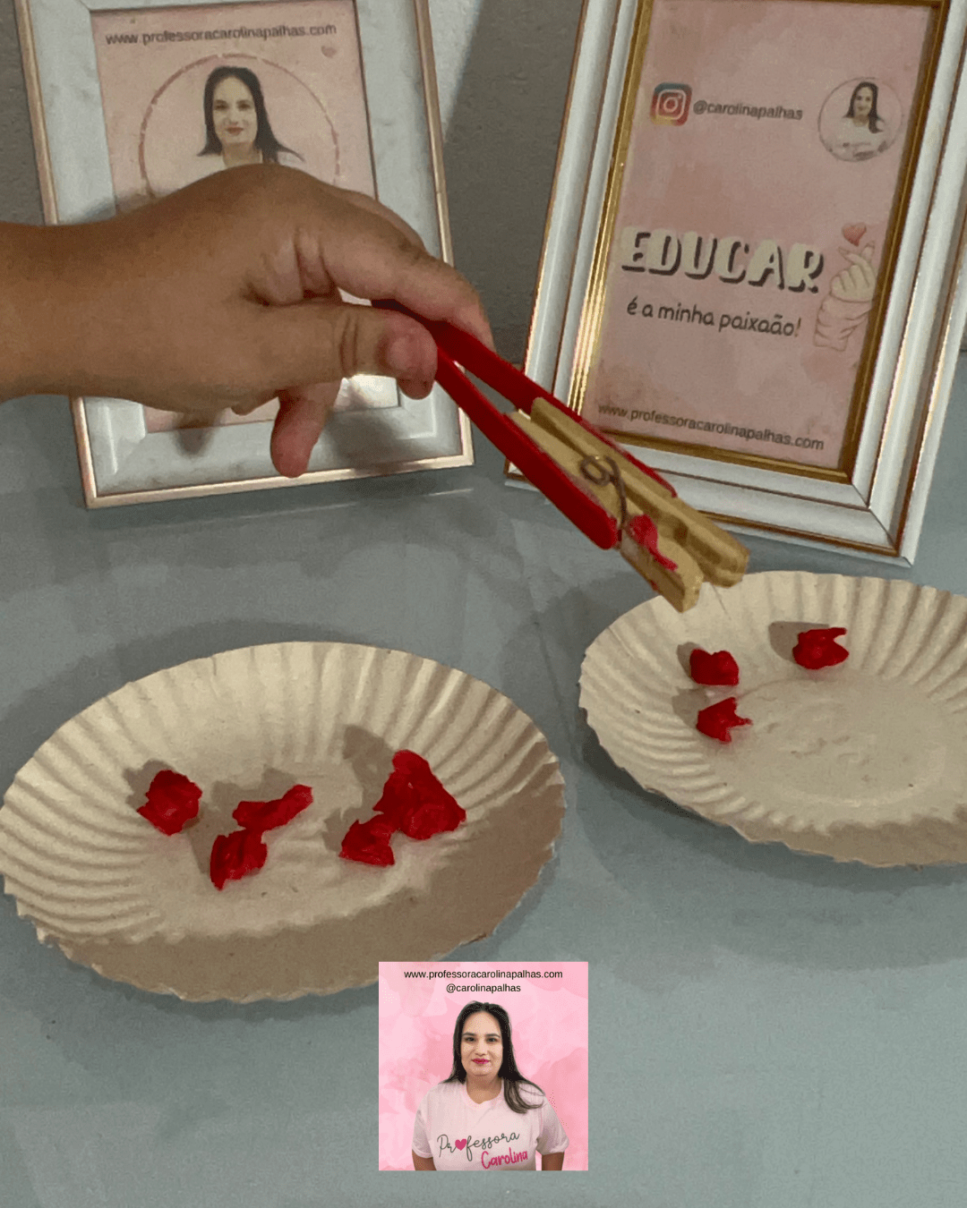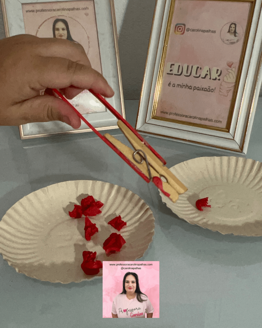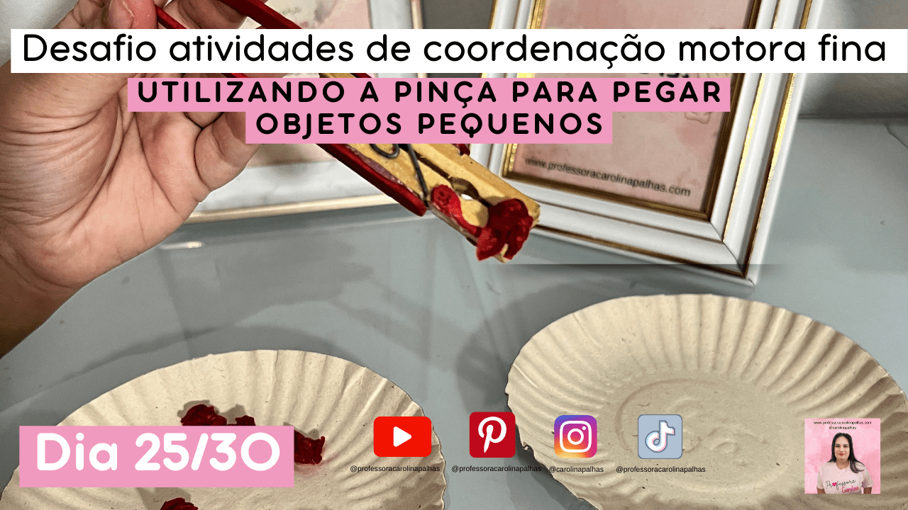 Queridos professores e educadores, Carolina Palhas está empolgada em apresentar a Atividade 25\30 – Utilizando a Pinça! 🧤✨