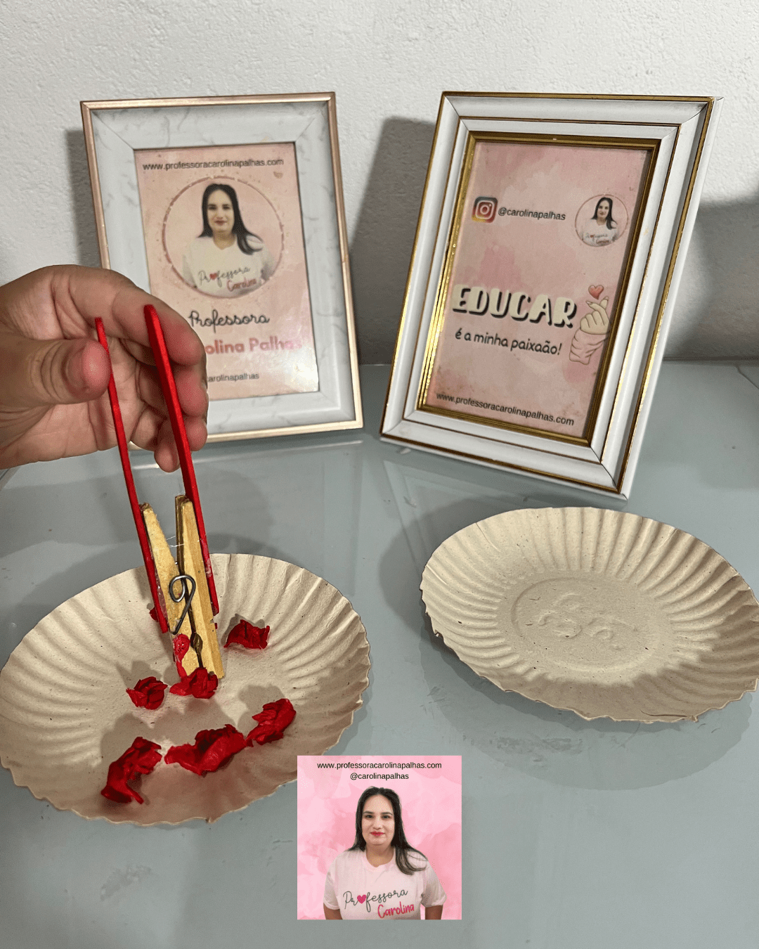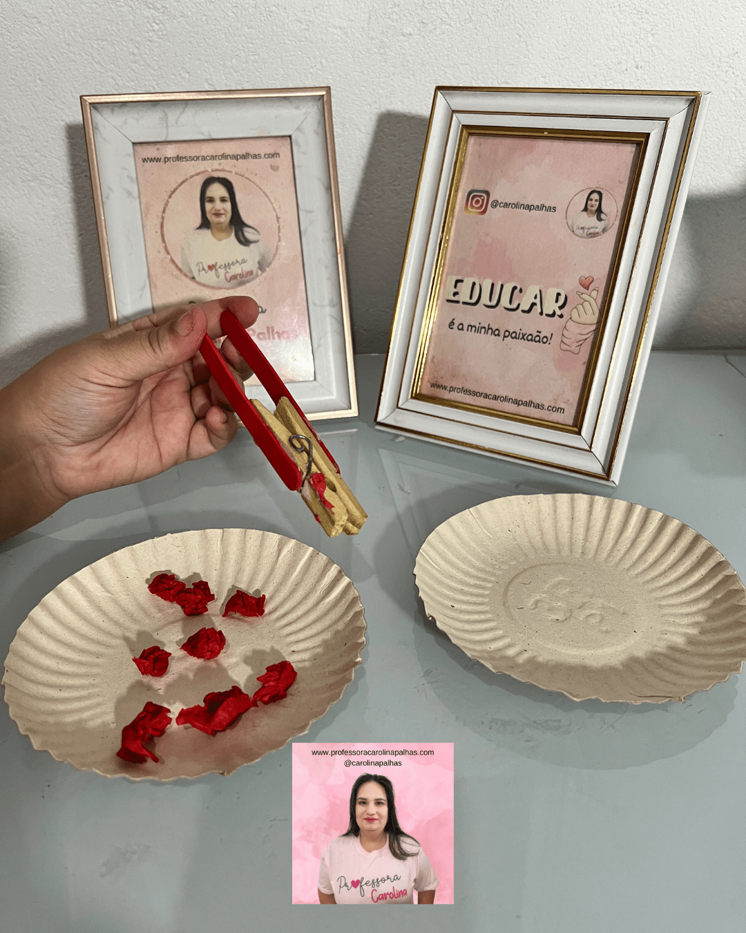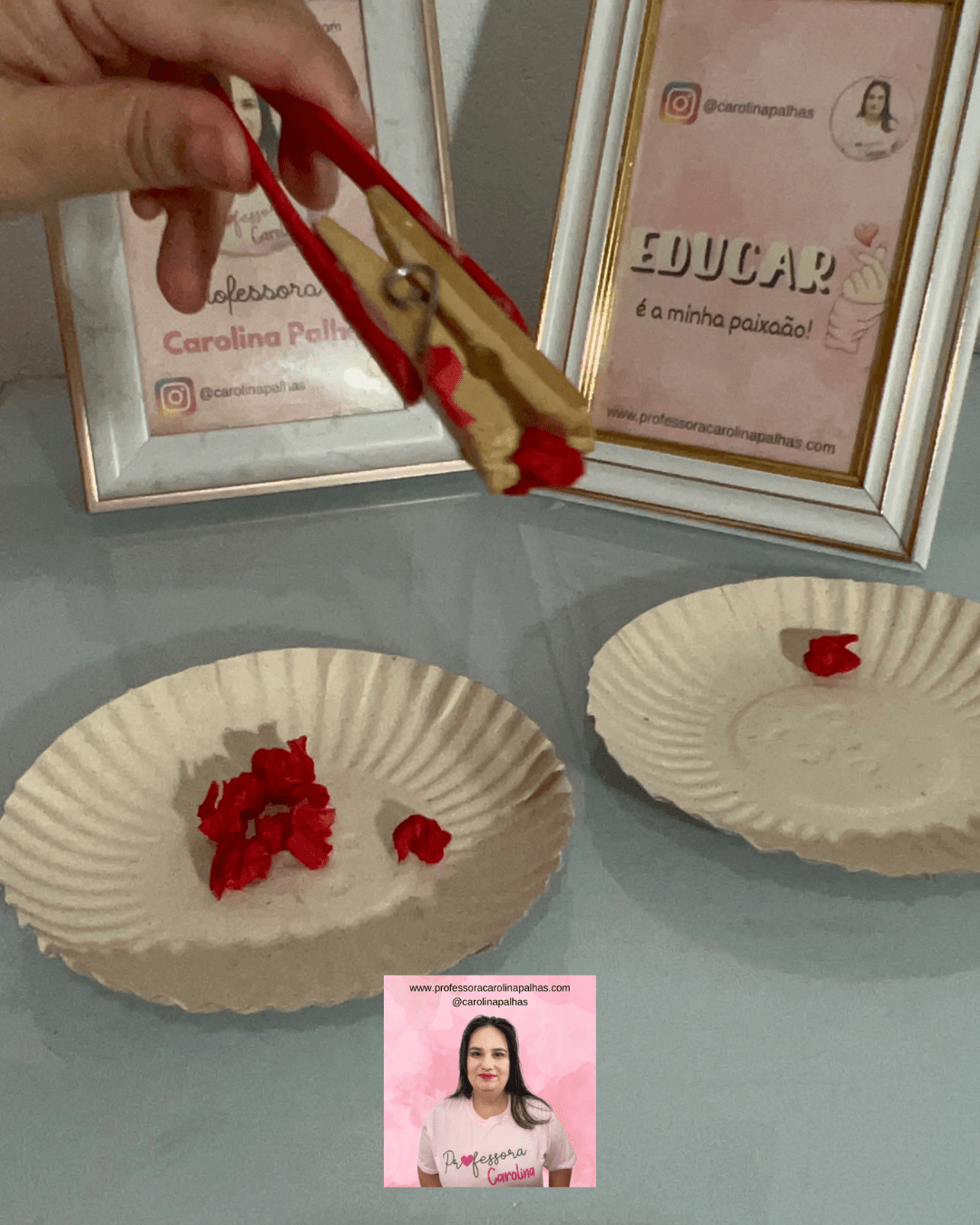 Queridos professores e educadores, Carolina Palhas está empolgada em apresentar a Atividade 25\30 – Utilizando a Pinça! 🧤✨