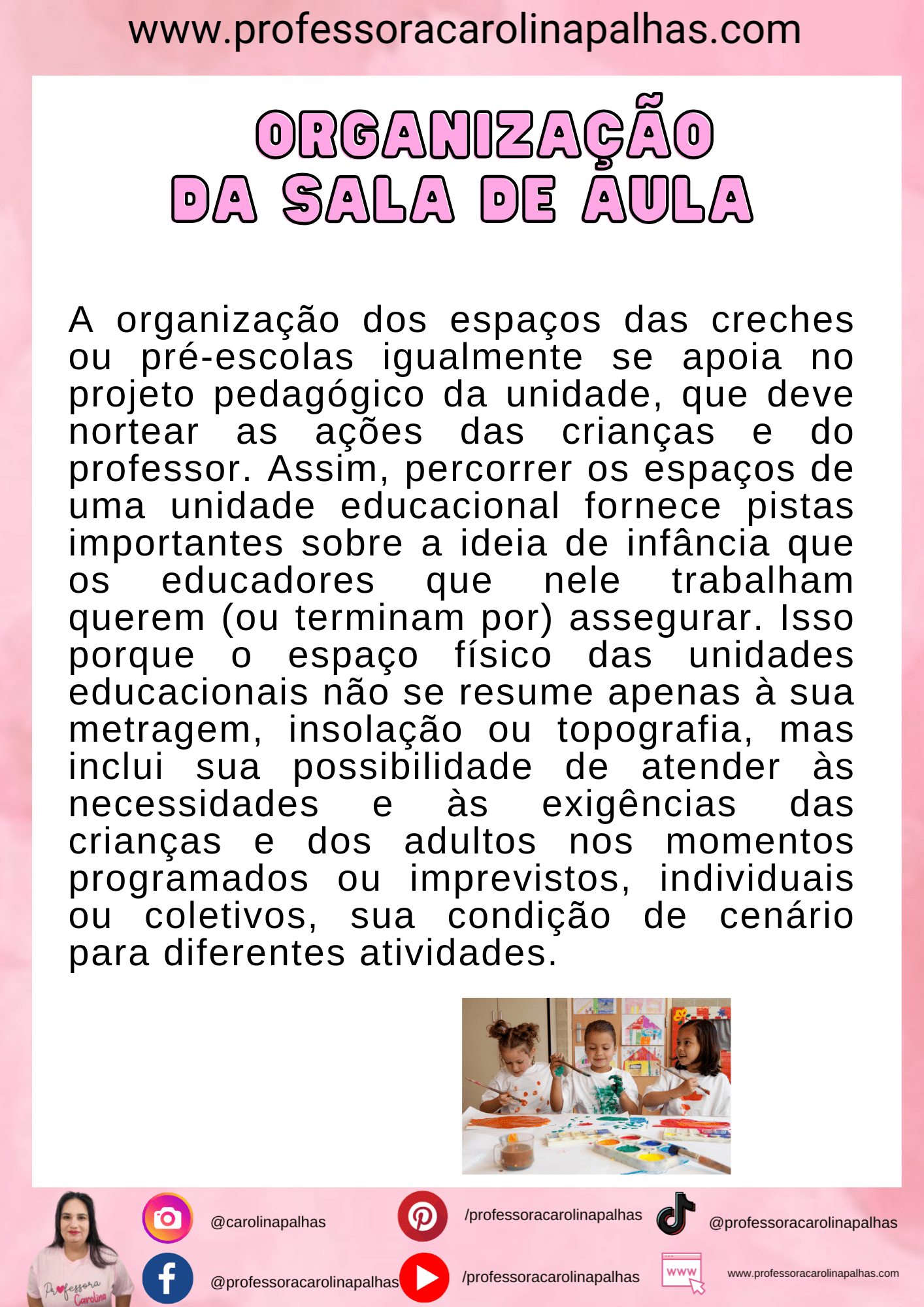 A organização do espaço físico e dos materiais em creches e pré-escolas é um aspecto crucial para o desenvolvimento de uma prática educativa eficaz com crianças pequenas. Isso significa que, para cada atividade planejada com as crianças, é necessário considerar cuidadosamente a disposição do mobiliário na sala de aula e a seleção de materiais específicos que contribuam para a criação de ambientes novos e estimulantes, alinhados com os projetos pedagógicos em andamento.