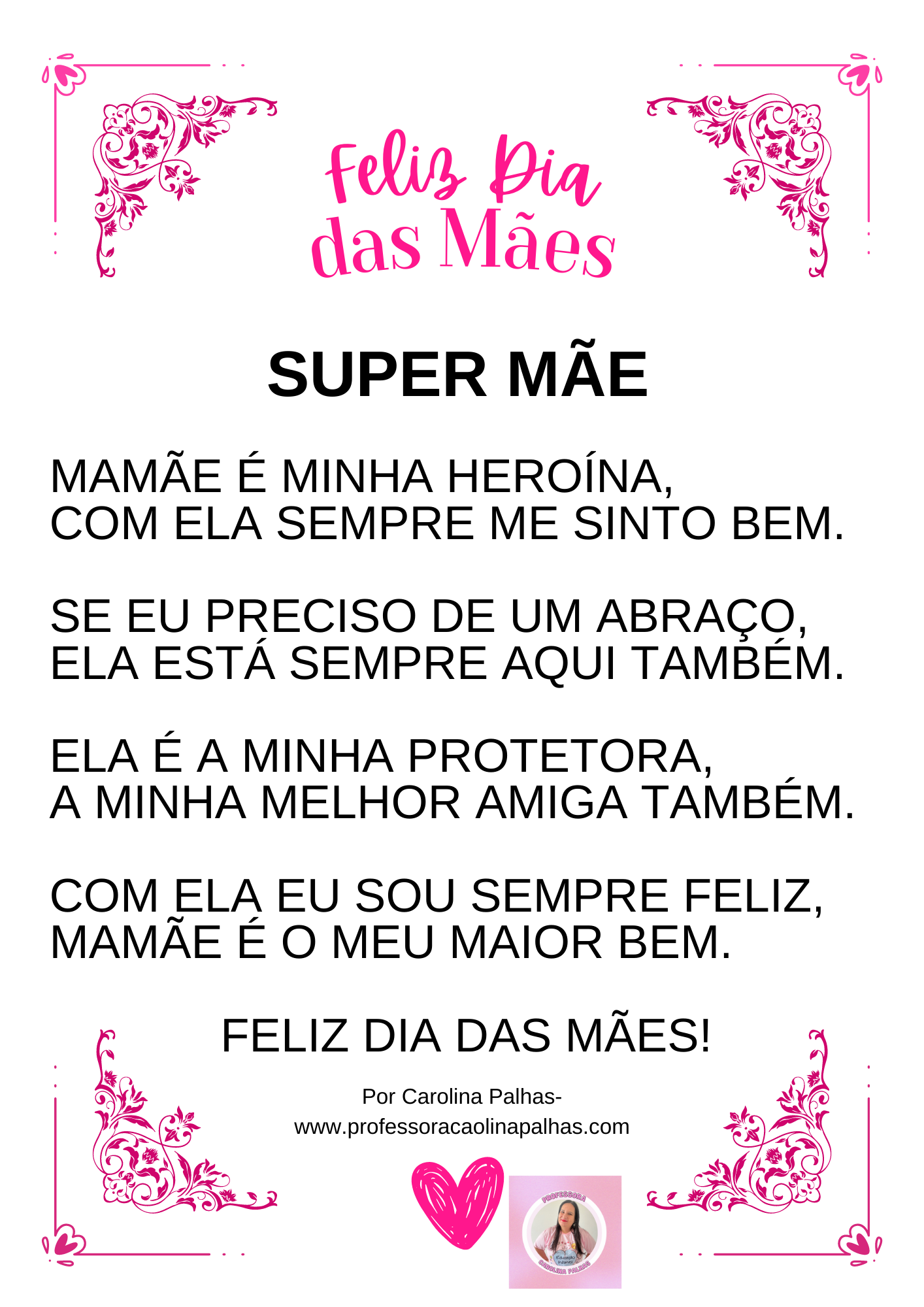 Poema Dia das mães para imprimir|Poema super mãe