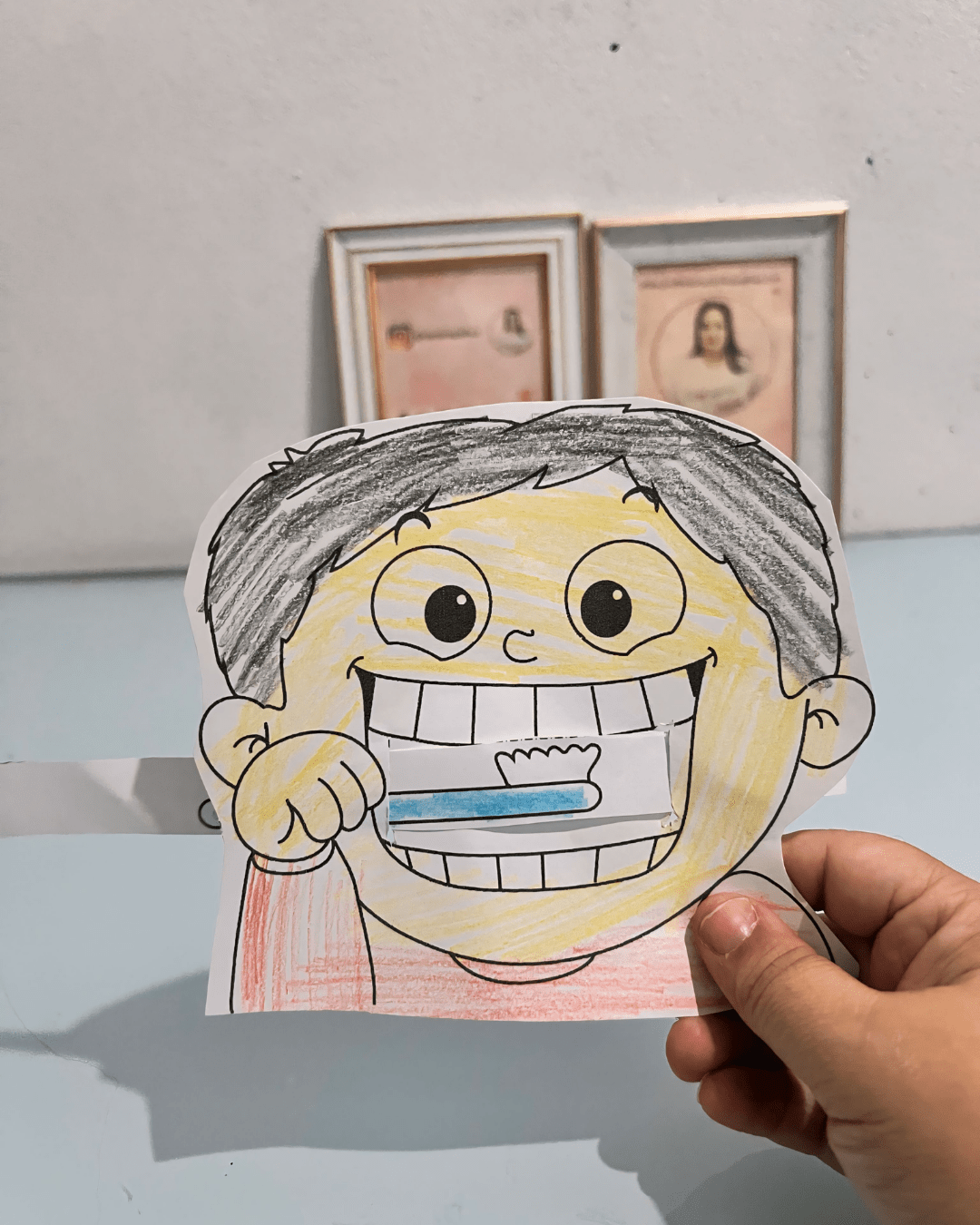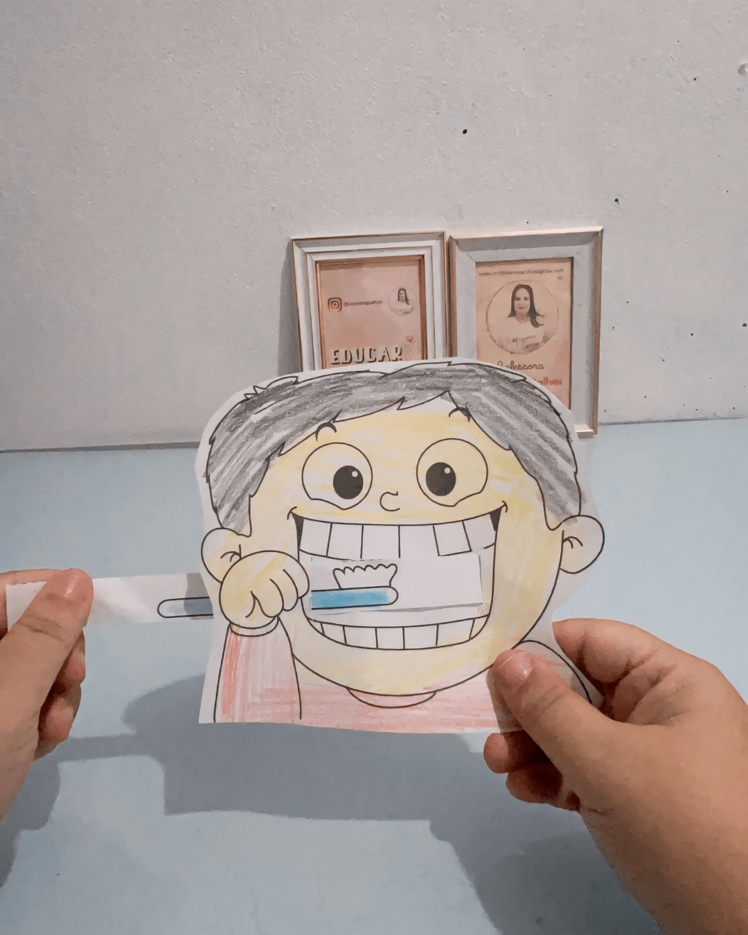 - Atividades na Mesa: Criamos um mural coletivo com fotos e desenhos das atividades da semana, celebrando os aprendizados sobre a higiene bucal.