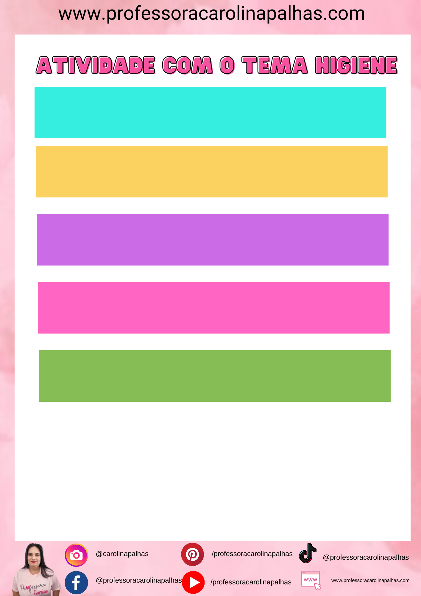 - Atividades de Roda: Conversa sobre o que é higiene e por que é importante manter o corpo limpo. (Campo de Experiência: O eu, o outro e o nós; Habilidades: Empatia e cooperação).