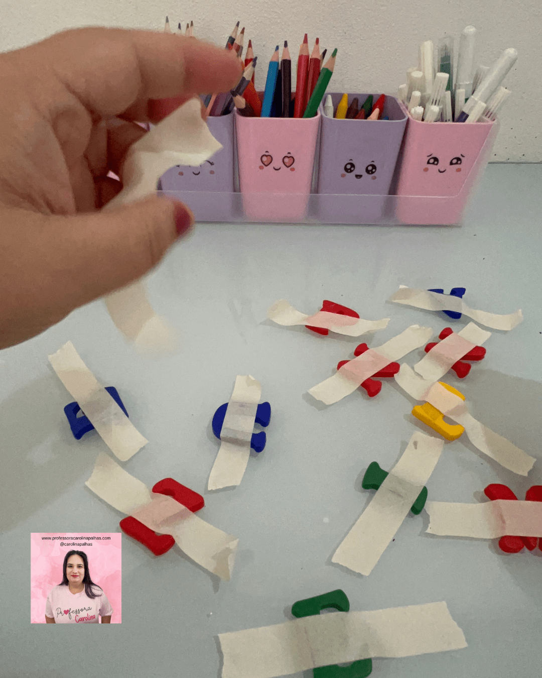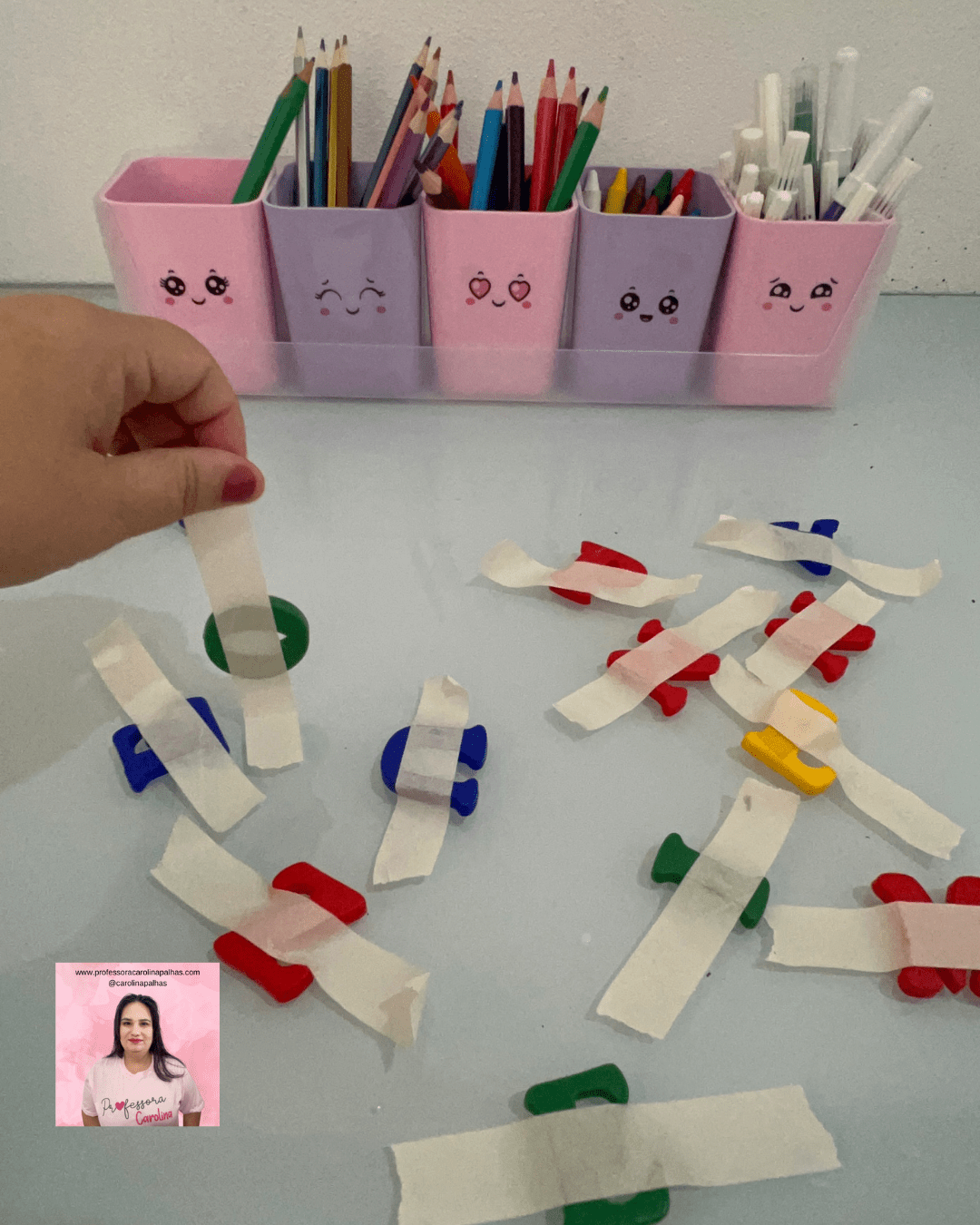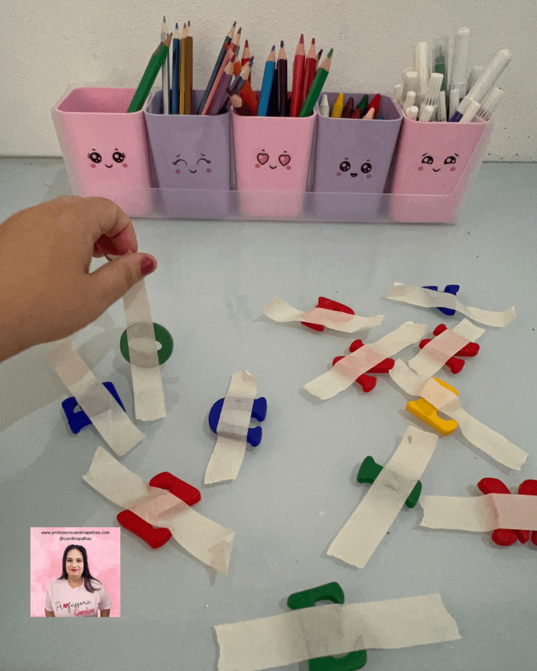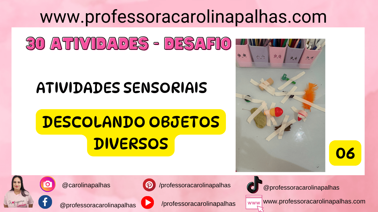 No nosso desafio “30 Atividades Sensoriais para Realizar Todos os Dias com as Crianças”, a atividade número 06 é “Descolando Objetos Diversos”. Esta atividade envolve a retirada de objetos previamente colados em uma superfície, permitindo às crianças explorar e aprimorar suas habilidades de coordenação motora fina e perceção sensorial.
