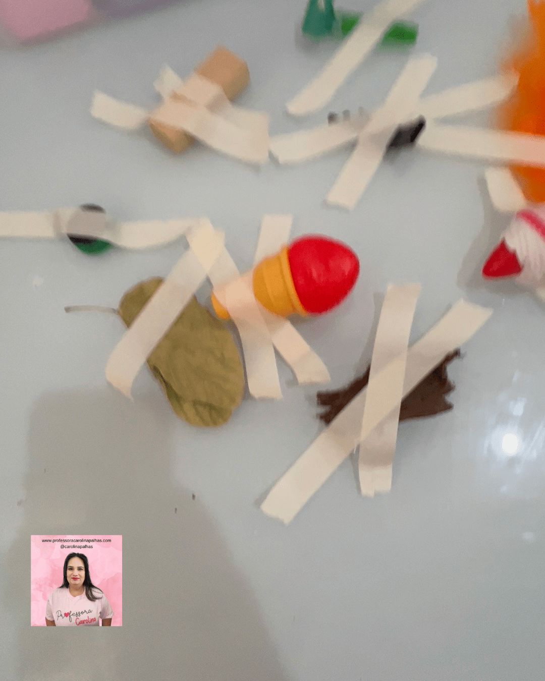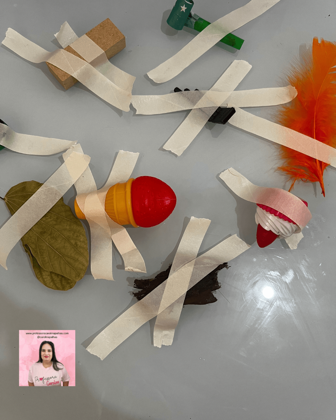 - Passo a Passo: Após descolar, as crianças devem usar os mesmos objetos para criar uma colagem artística.