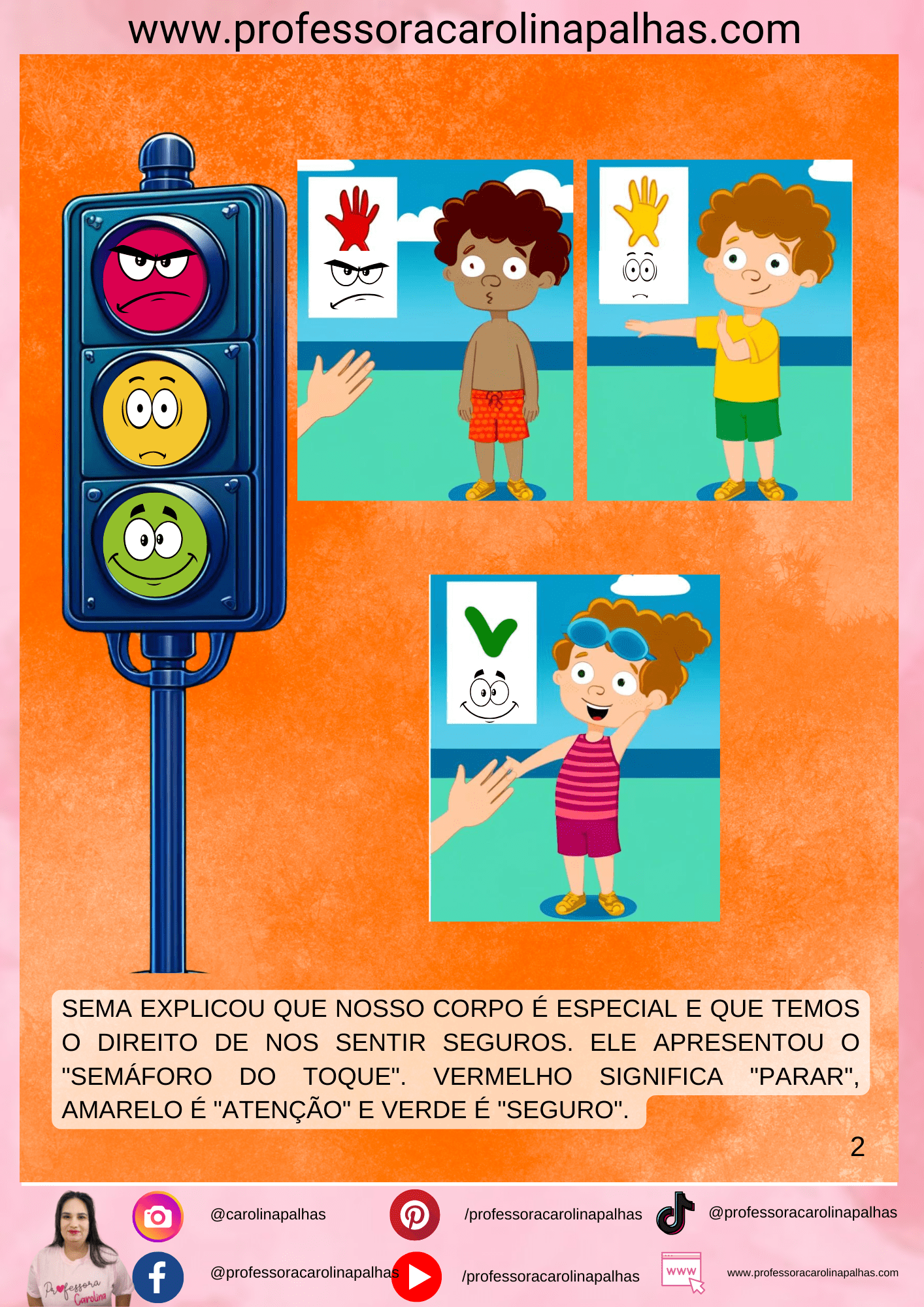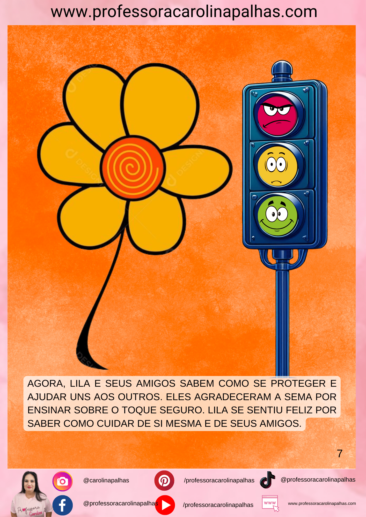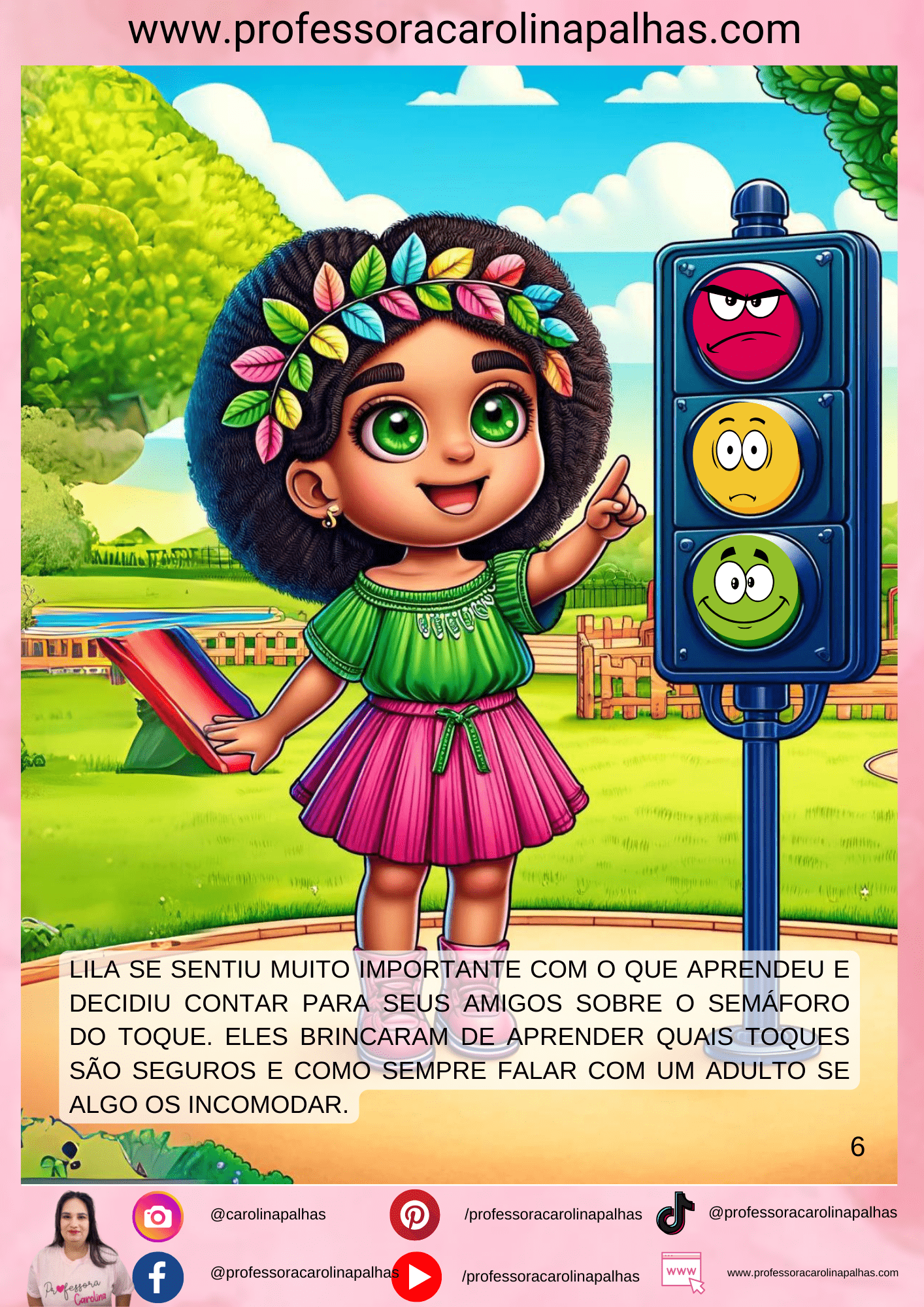 Olá, queridos leitores! Hoje trago para vocês uma ferramenta incrível para ensinar conceitos importantes sobre segurança pessoal para crianças: a história “O Semáforo Mágico de Lila”. Este recurso é essencial para ajudar os pequenos a entenderem os toques seguros e inseguros de uma maneira delicada e compreensível. A história está disponível em nosso post tanto em formato PDF quanto em imagem, garantindo que todos tenham acesso fácil e possam utilizar em diferentes contextos educacionais.