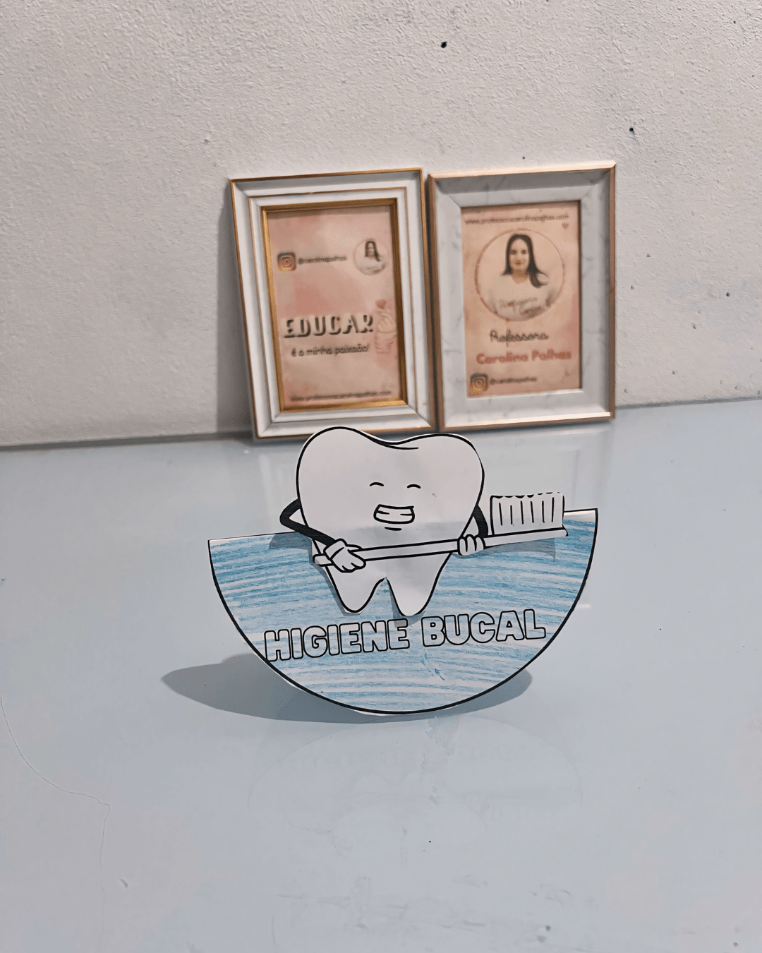 - Atividades na Mesa: Criamos um mural coletivo com fotos e desenhos das atividades da semana, celebrando os aprendizados sobre a higiene bucal.