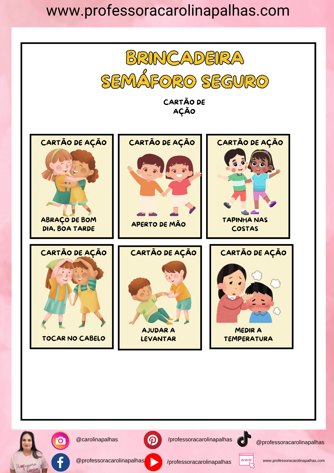 • Objetivos: Reforçar o conceito de toque seguro por meio de uma atividade interativa; desenvolver habilidades socioemocionais nas crianças.