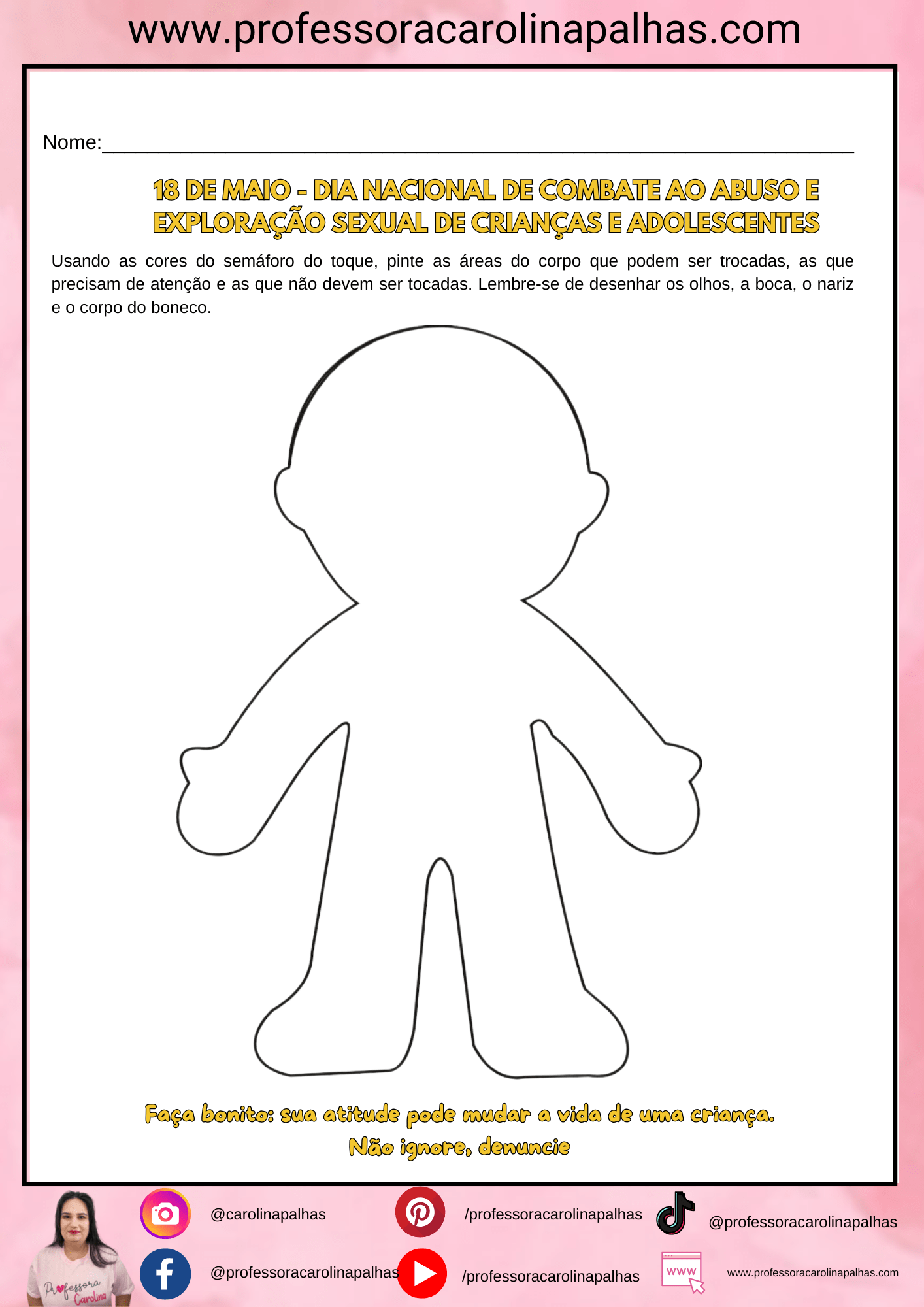 • Descrição: Apresentamos uma atividade artística que combina criatividade com aprendizado sobre o toque seguro. As crianças podem expressar-se artisticamente enquanto internalizam lições importantes sobre o consentimento e o respeito pessoal.