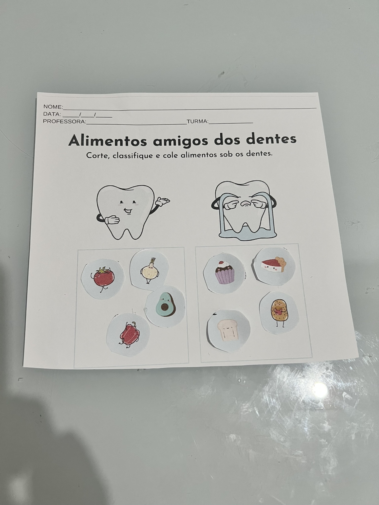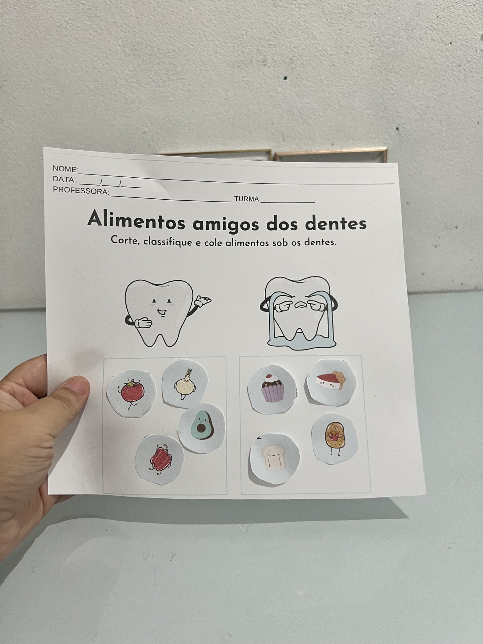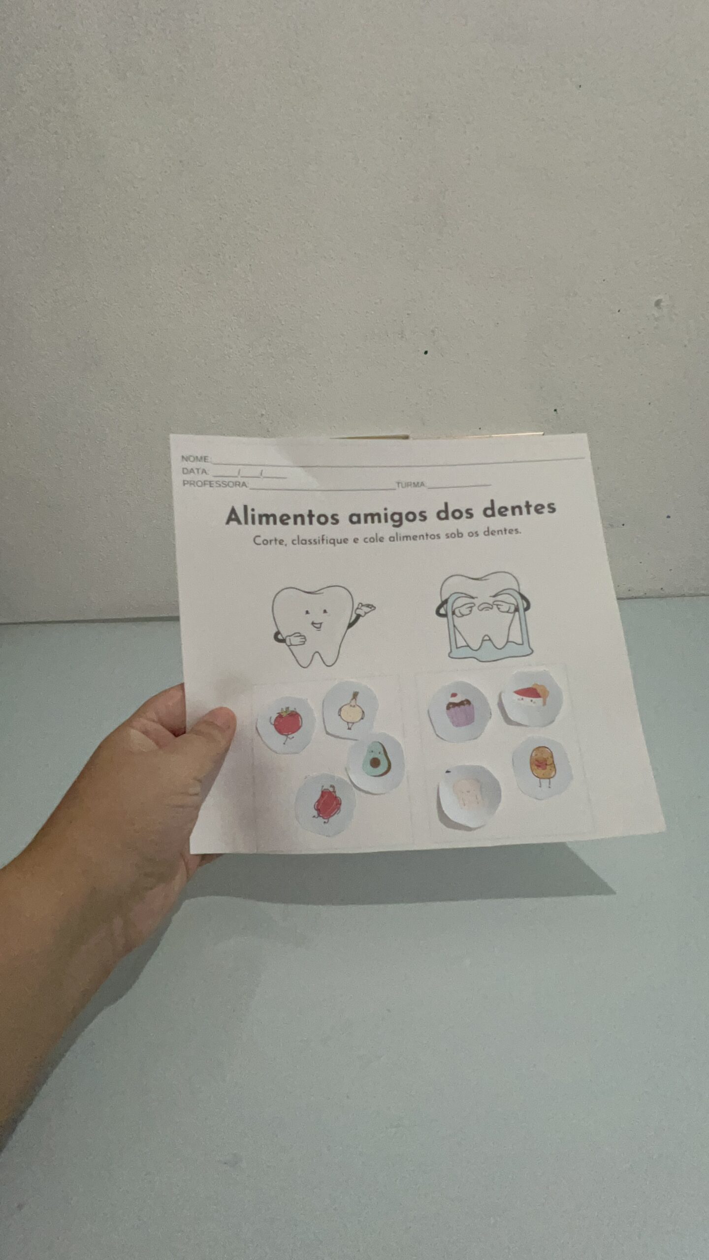 - Atividades na Mesa: Criamos um mural coletivo com fotos e desenhos das atividades da semana, celebrando os aprendizados sobre a higiene bucal.