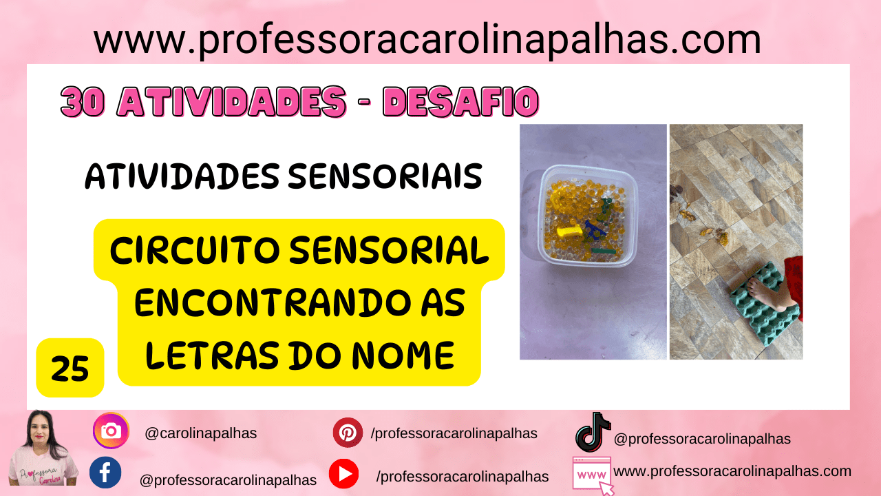 Prosseguindo com o nosso desafio “30 Atividades Sensoriais para Realizar Todos os Dias com as Crianças”, apresentamos a atividade número 24: “Circuito Sensorial Encontrando as Letras do Nome”. Esta atividade é projetada para ensinar as crianças a reconhecer as letras de seus nomes de forma interativa e sensorial.