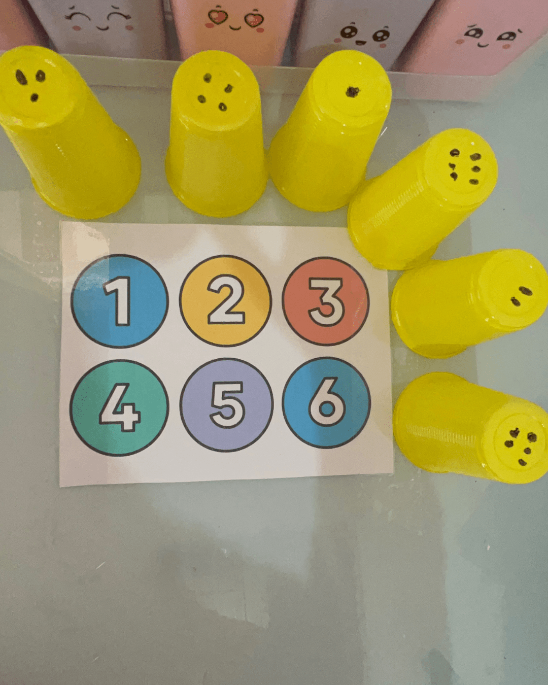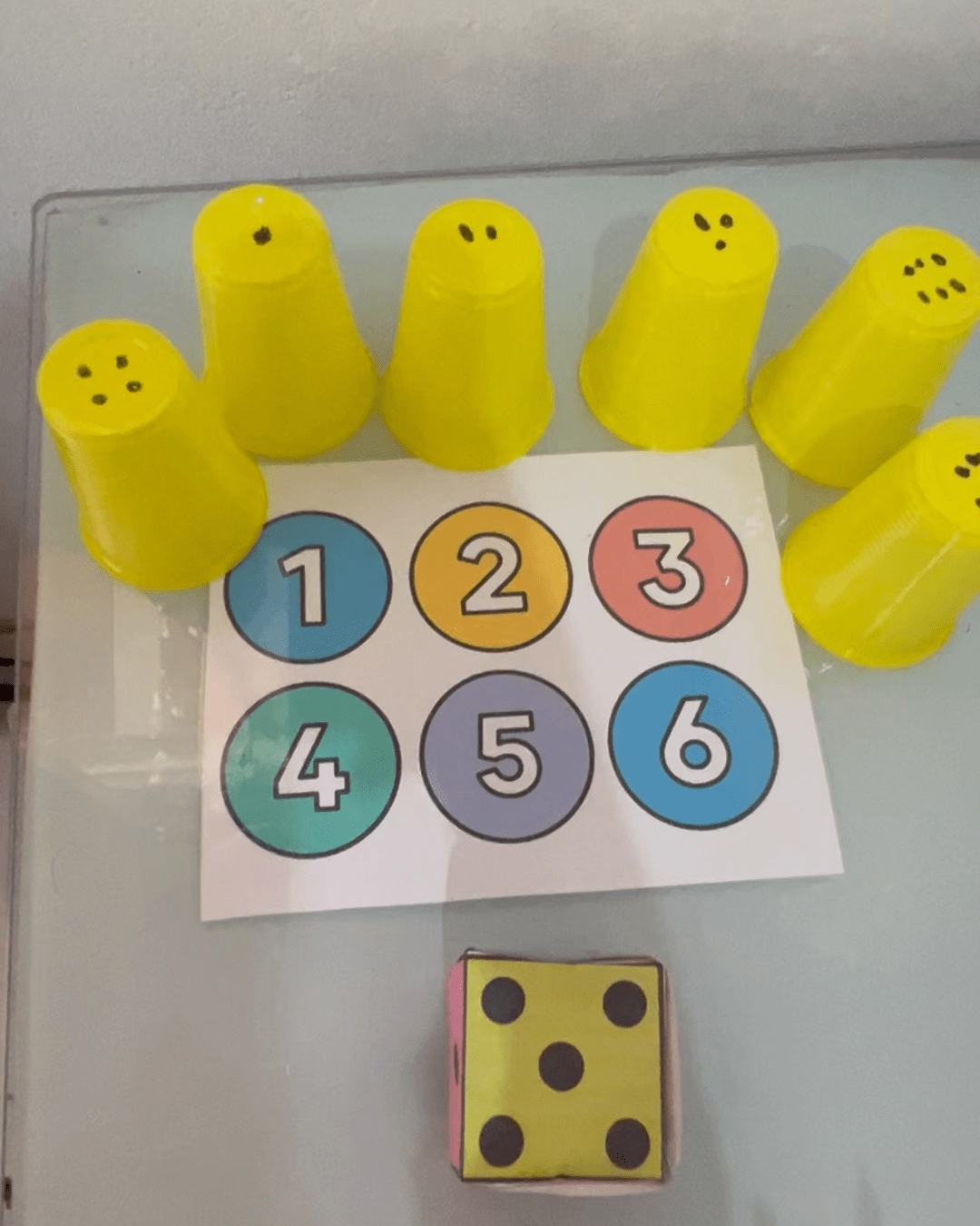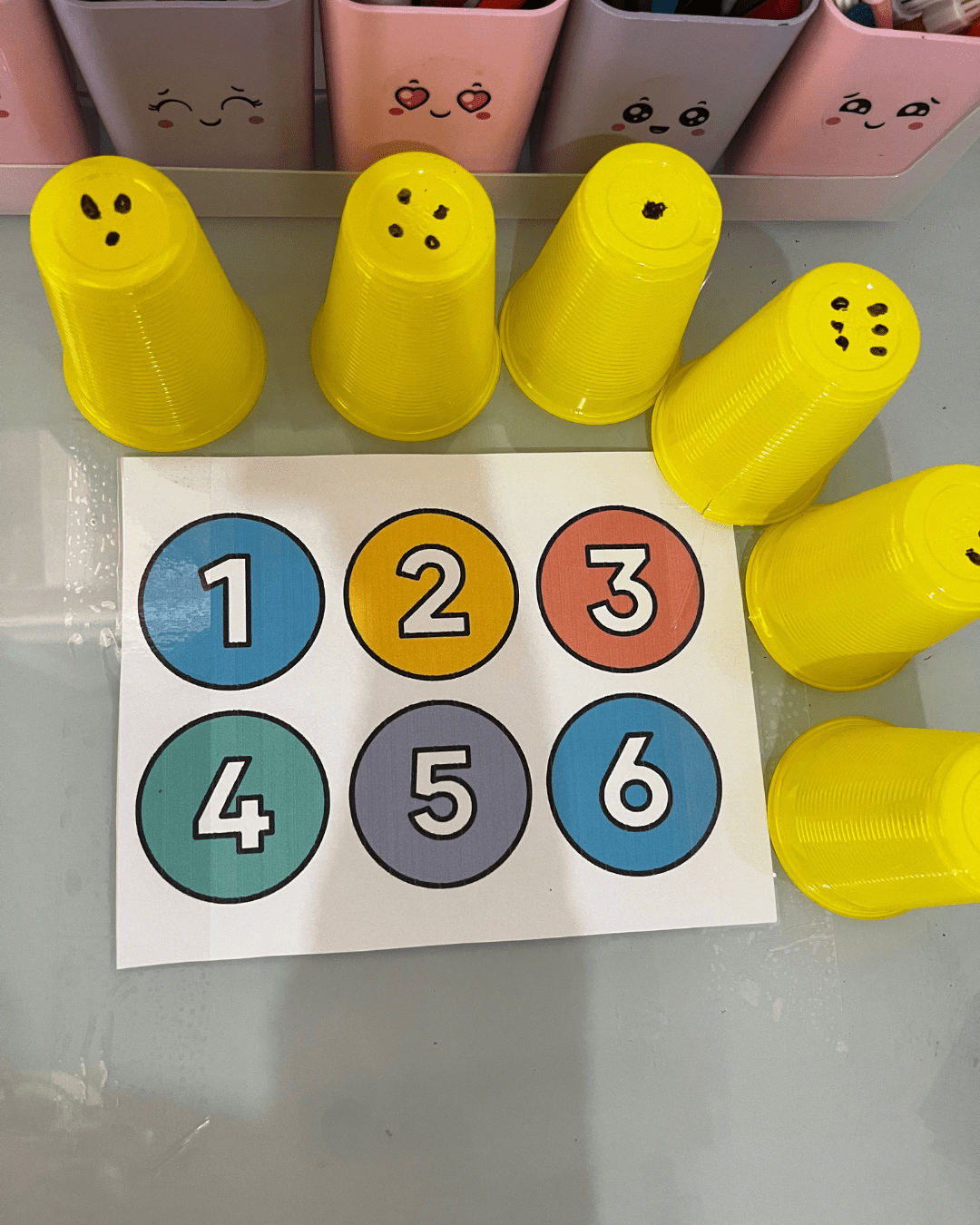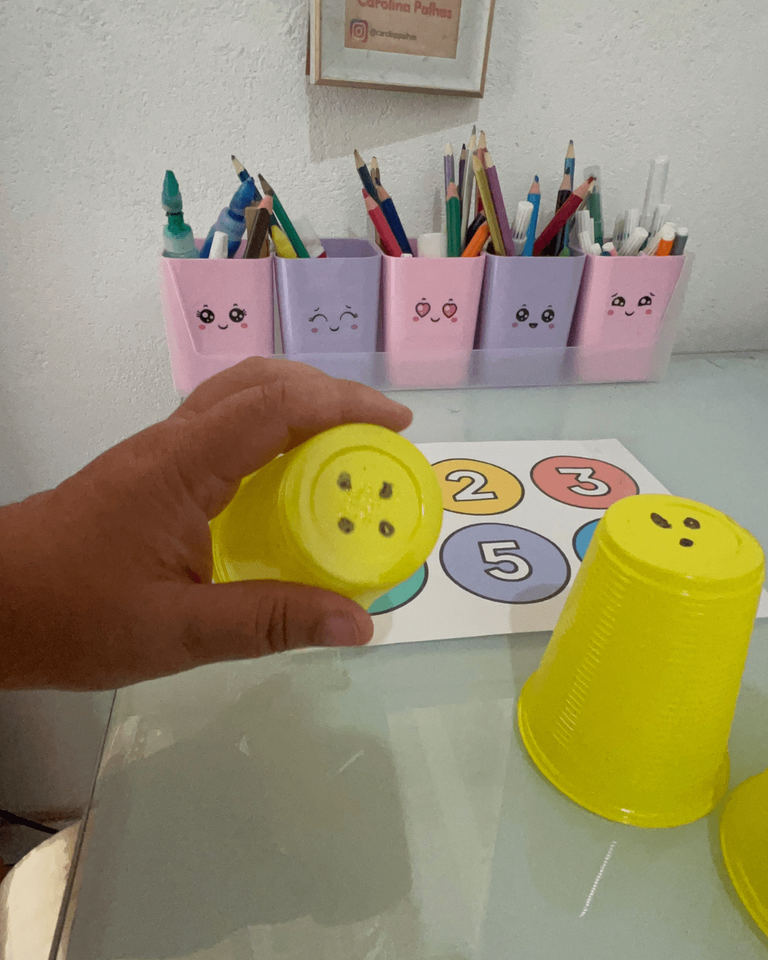 - Passo a Passo: Pedir para as crianças identificarem os números nos copos.