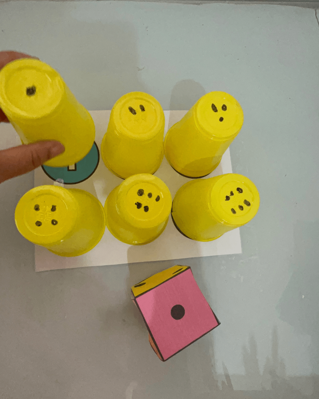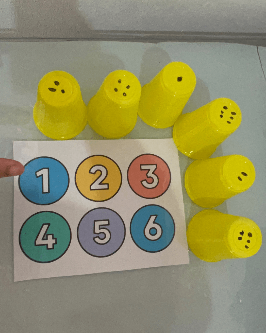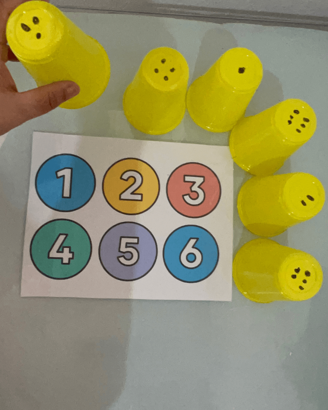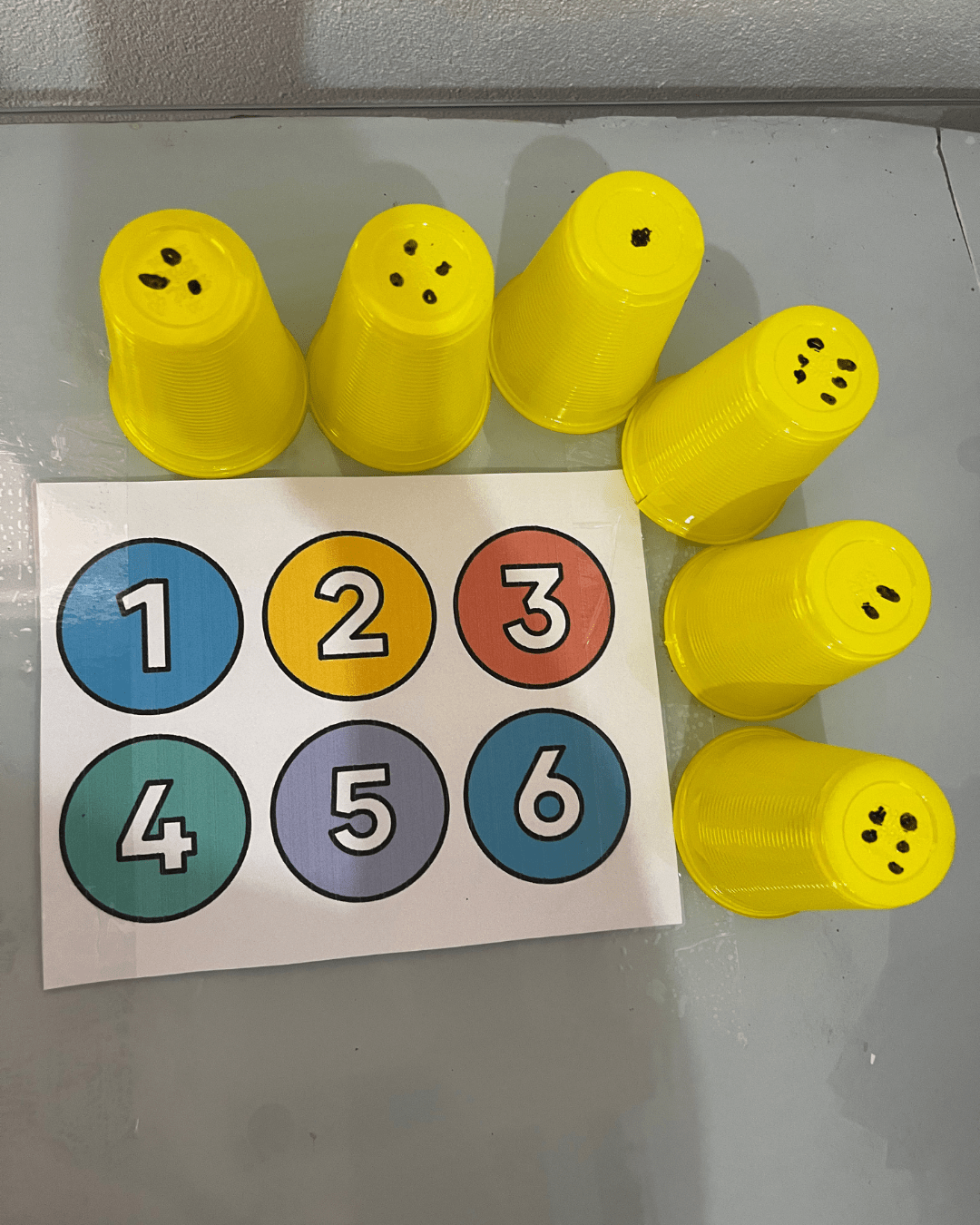 - Passo a Passo: Pedir para as crianças identificarem os números nos copos.