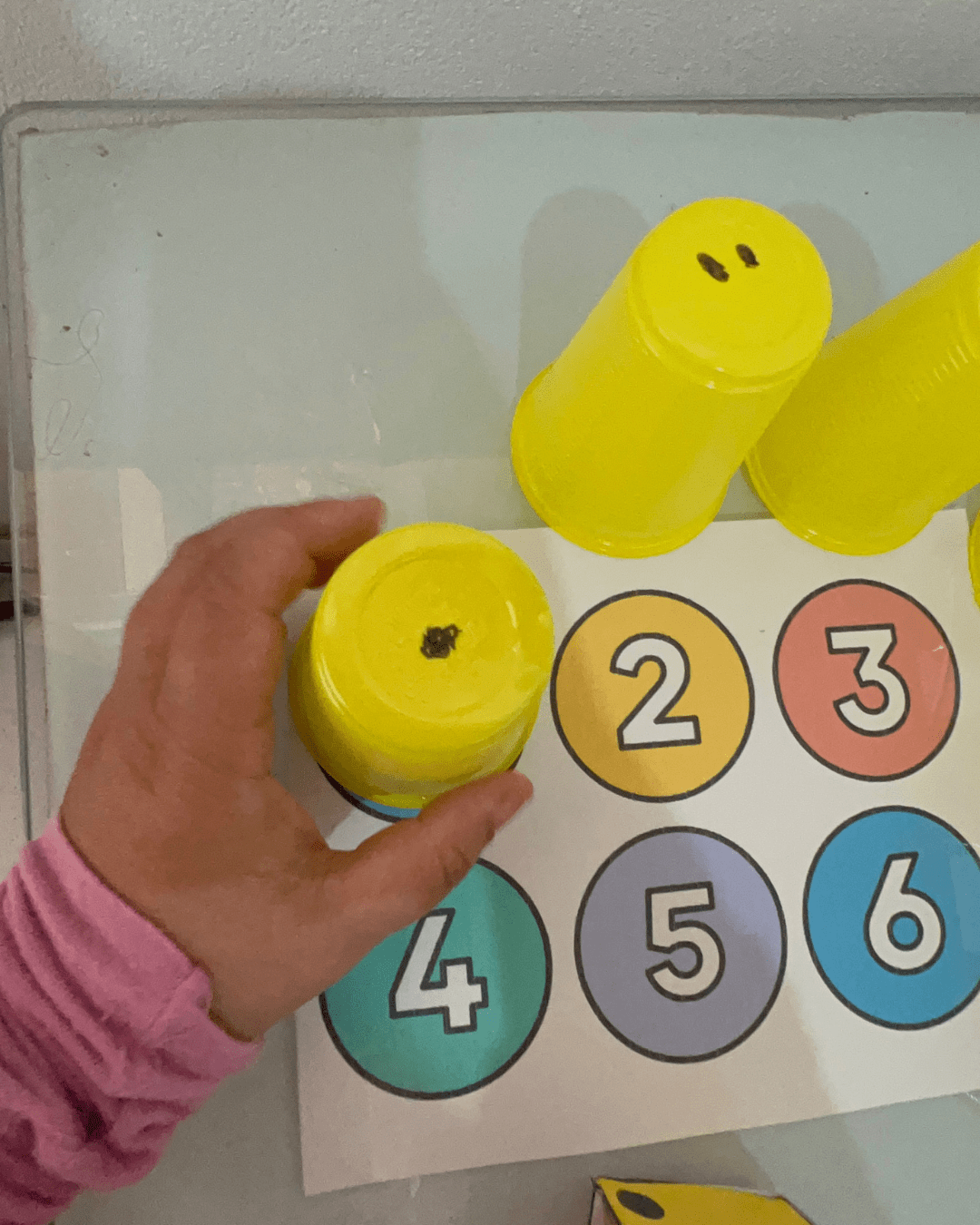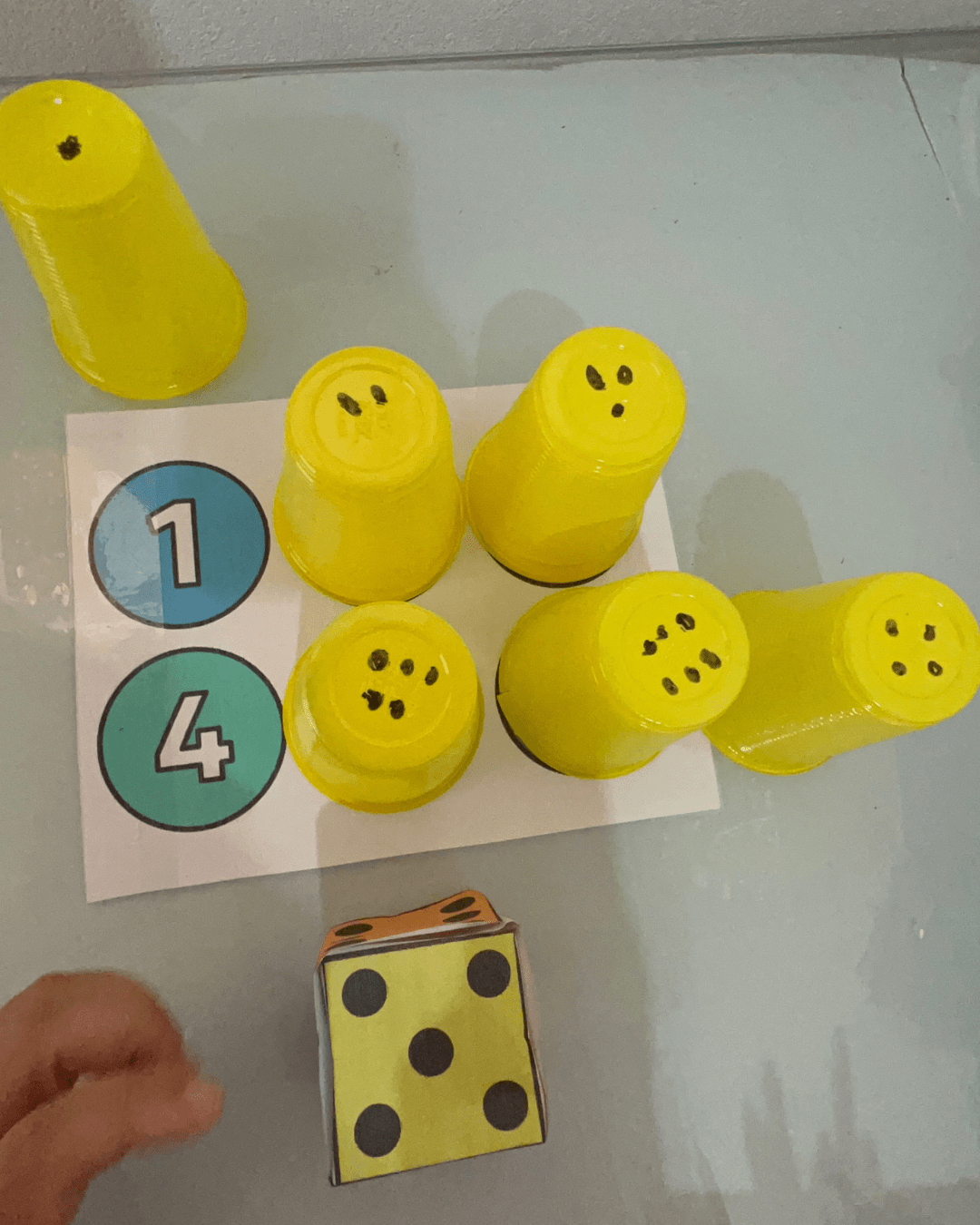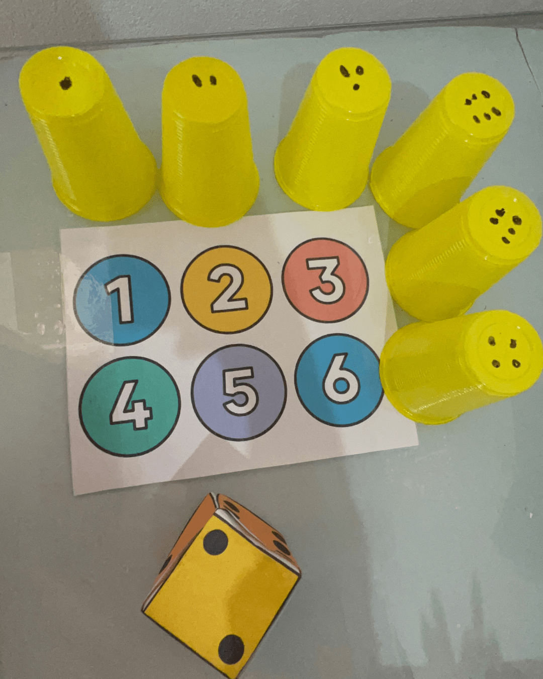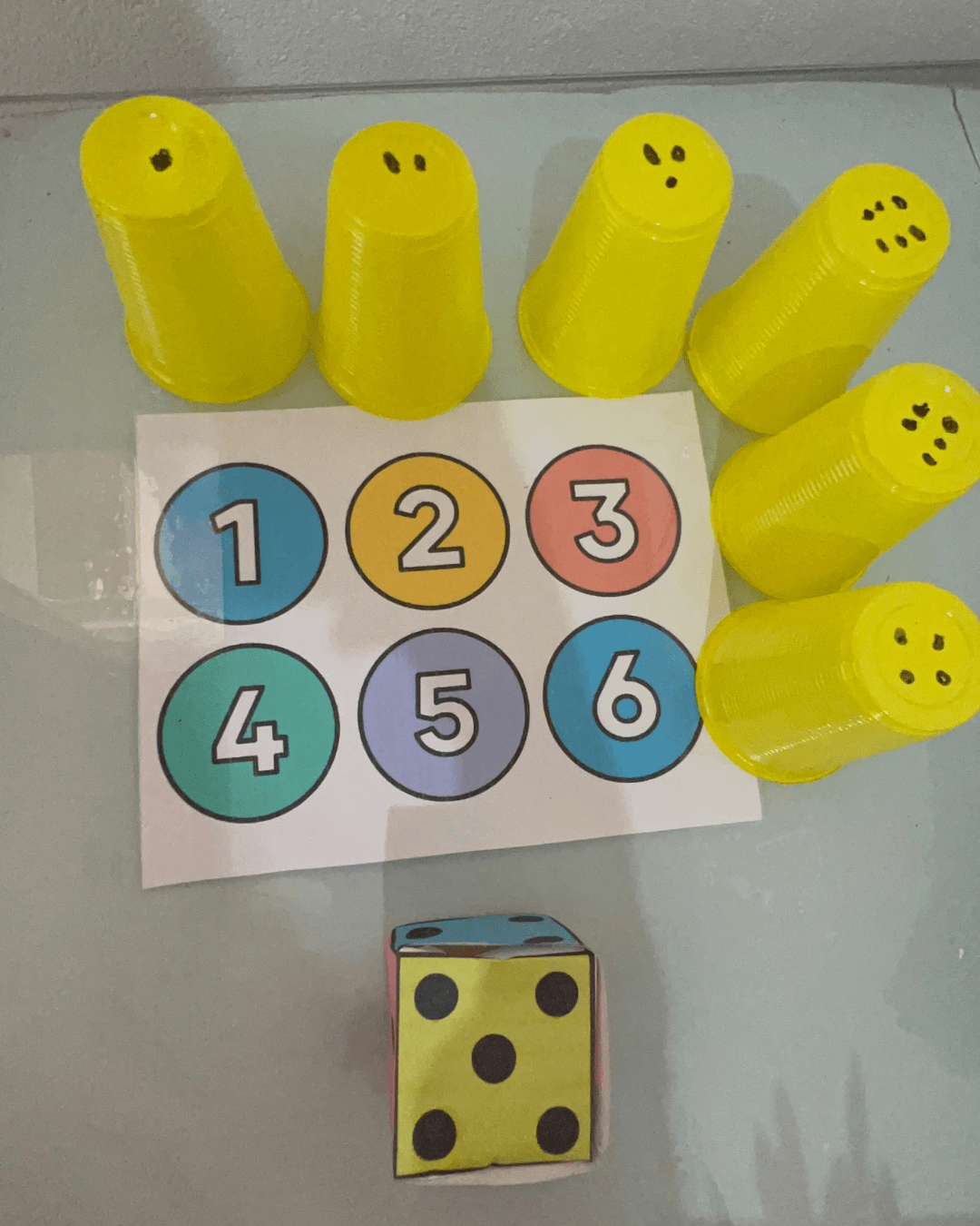 - Passo a Passo: Pedir para as crianças identificarem os números nos copos.