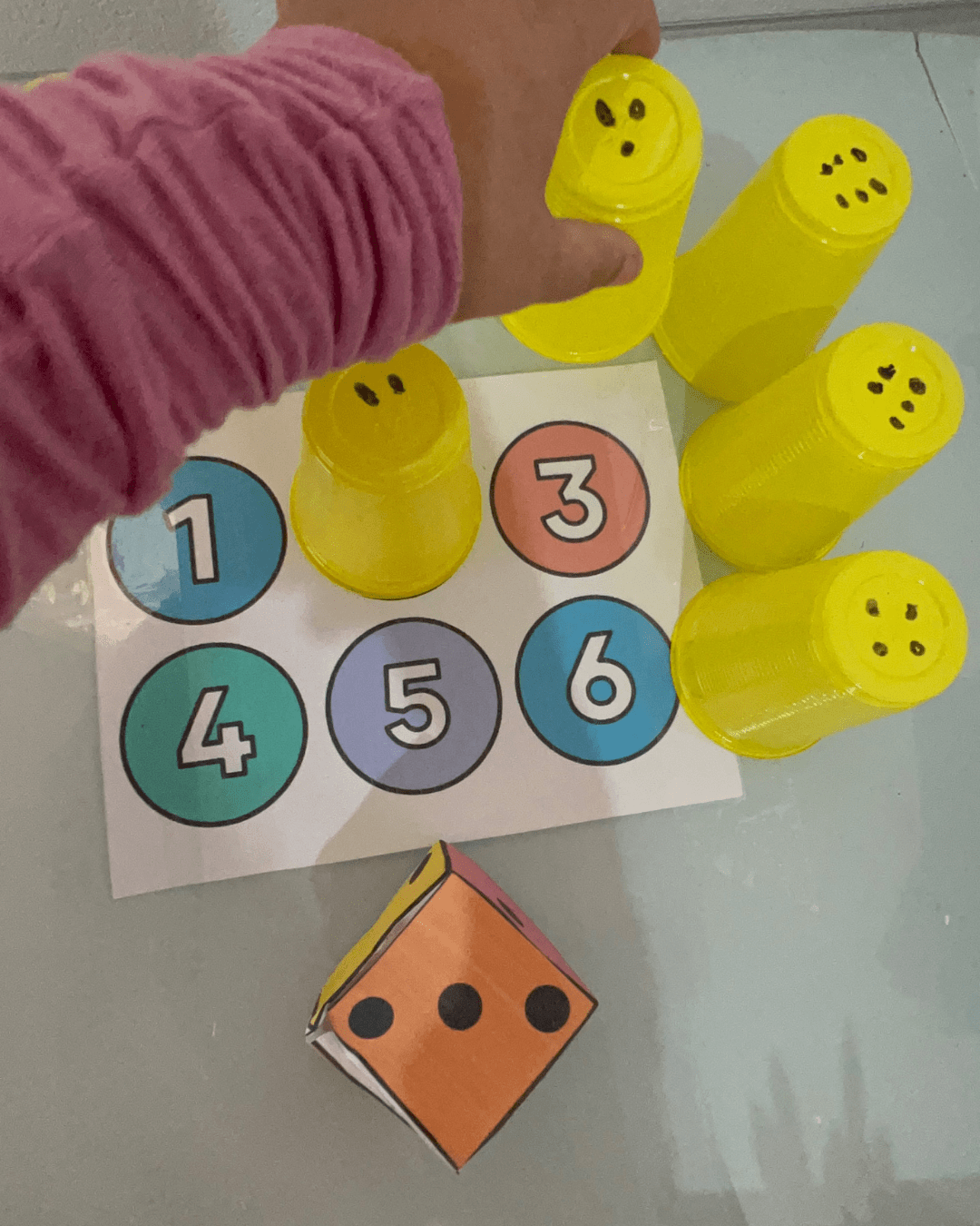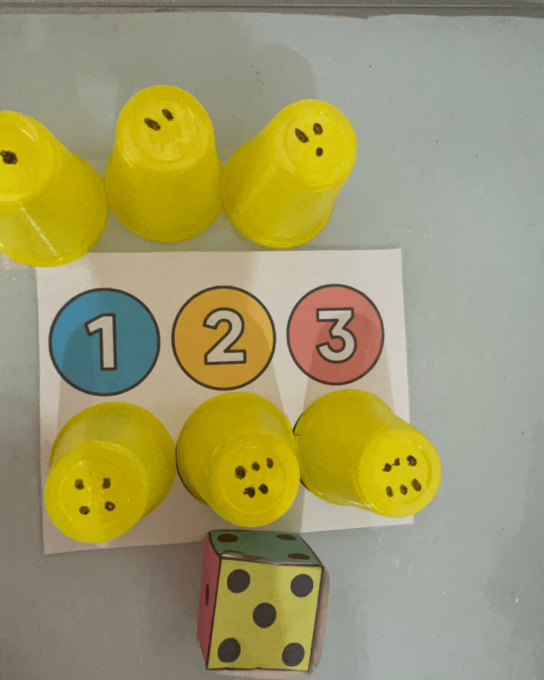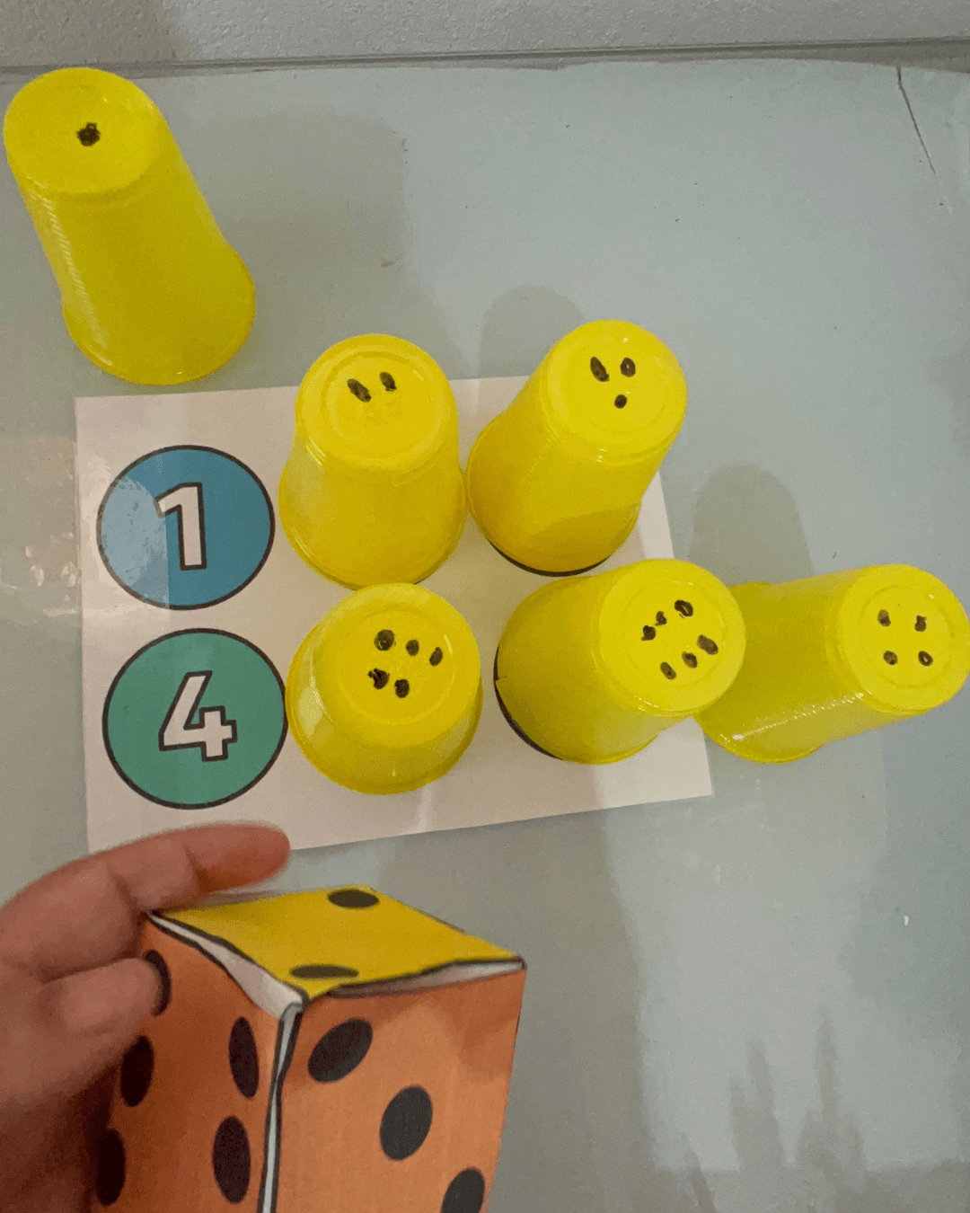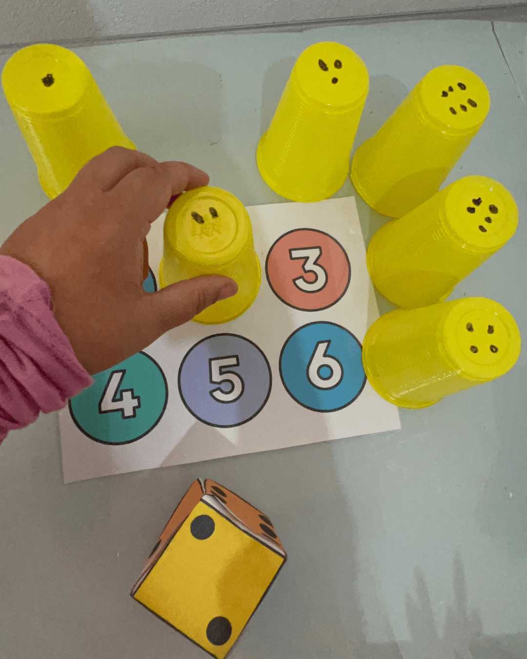 - Passo a Passo: Pedir para as crianças identificarem os números nos copos.