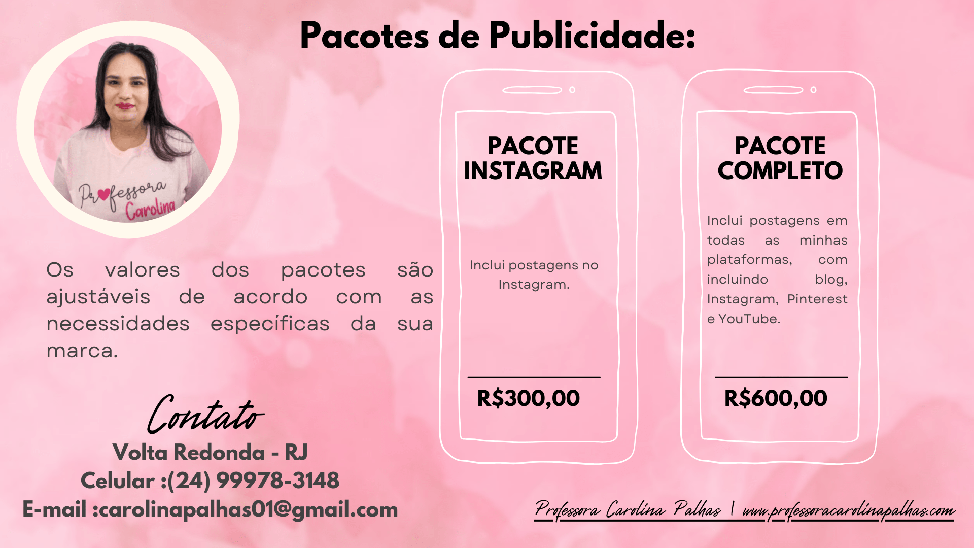 - Pacotes de publicidade cruzada entre Instagram, blog, Pinterest e YouTube.