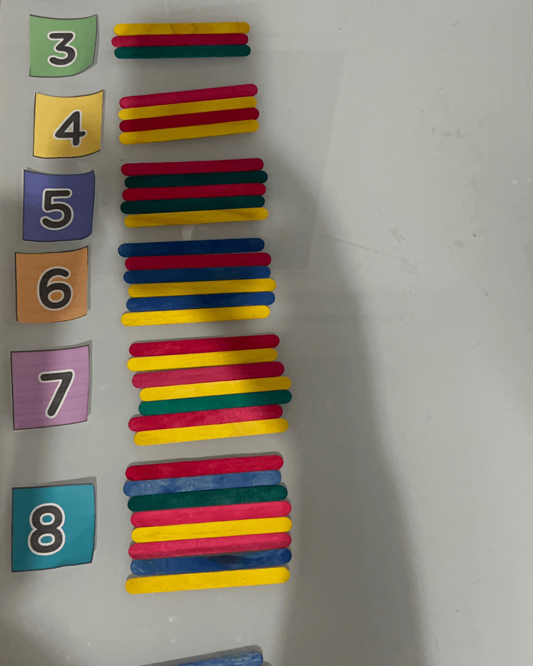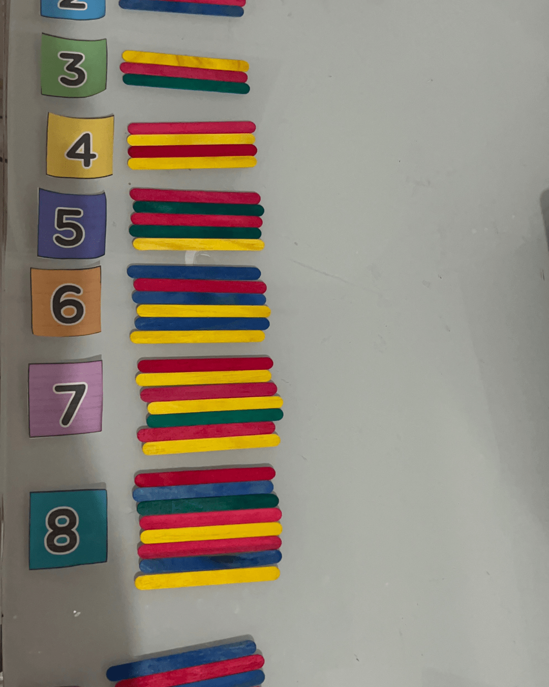- Peça para que construam torres com um número específico de blocos (1 a 10).