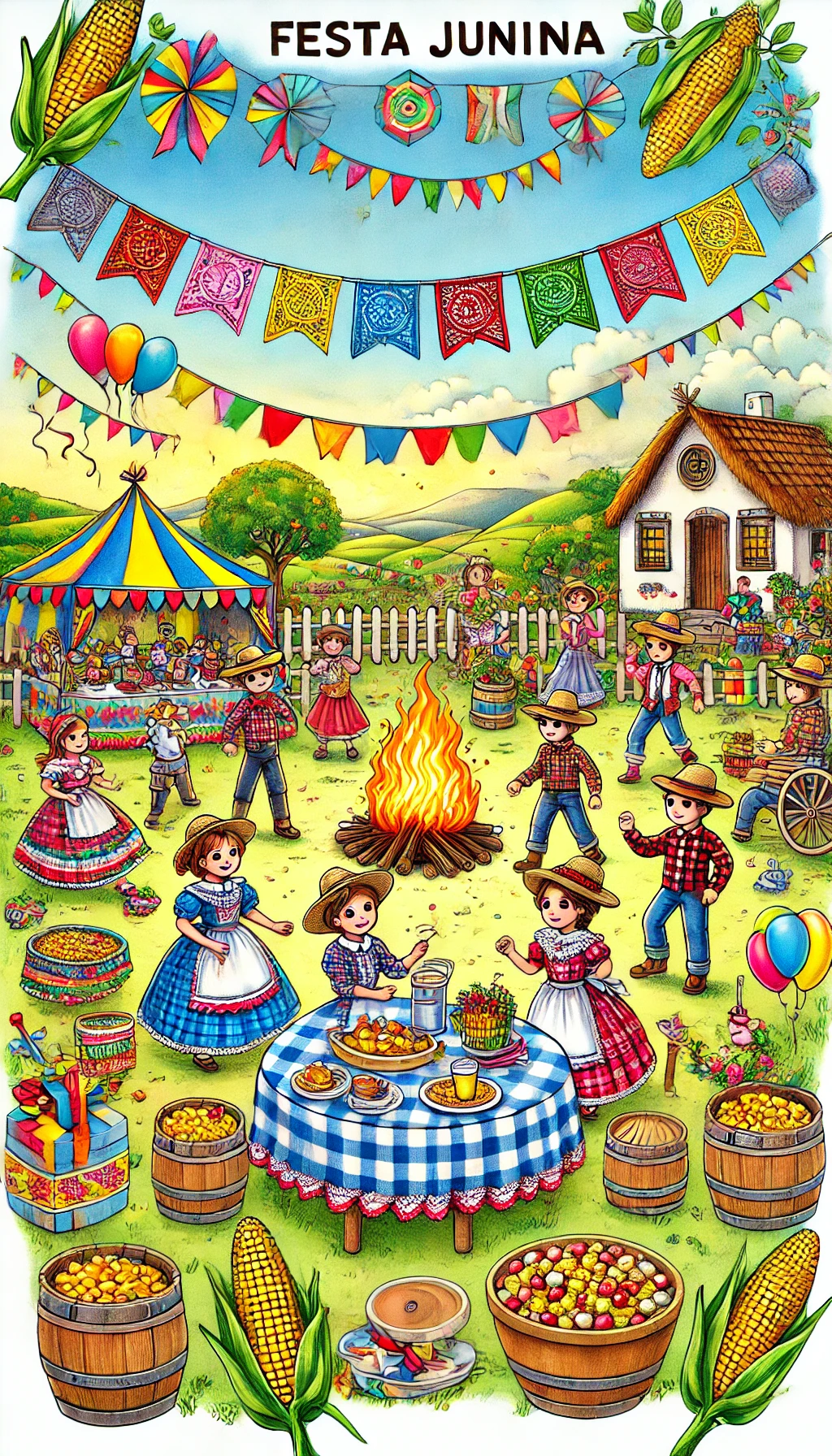- Objetivos de Aprendizagem e Desenvolvimento: Compreender a cultura das festas juninas, reconhecer as músicas típicas.