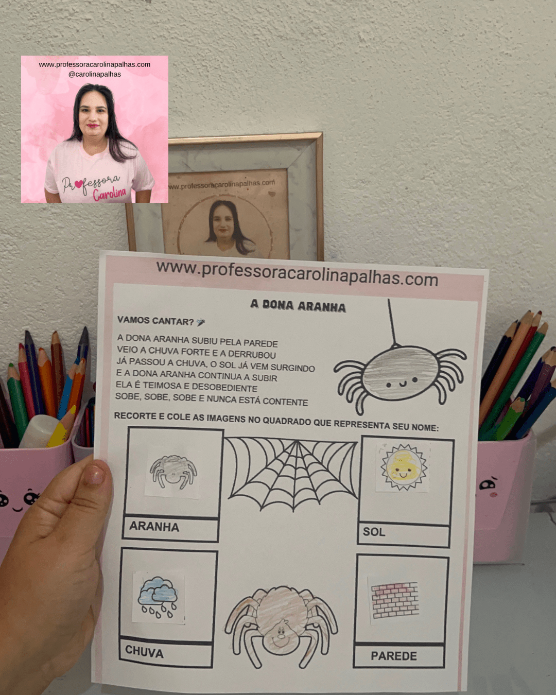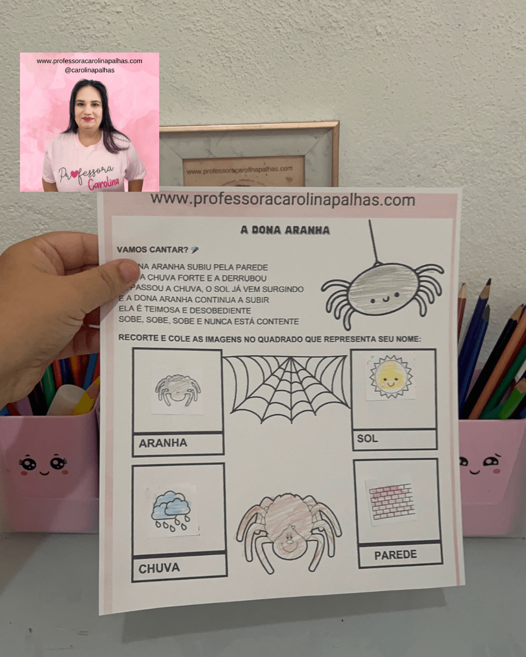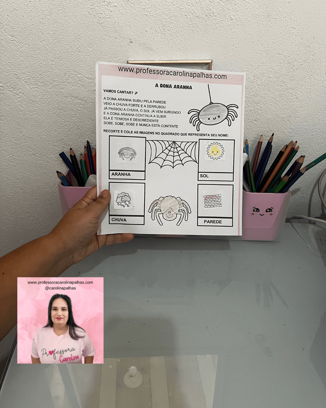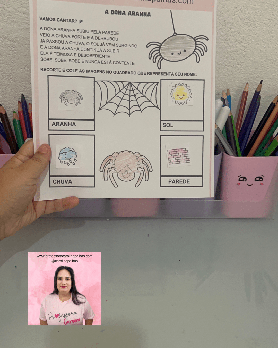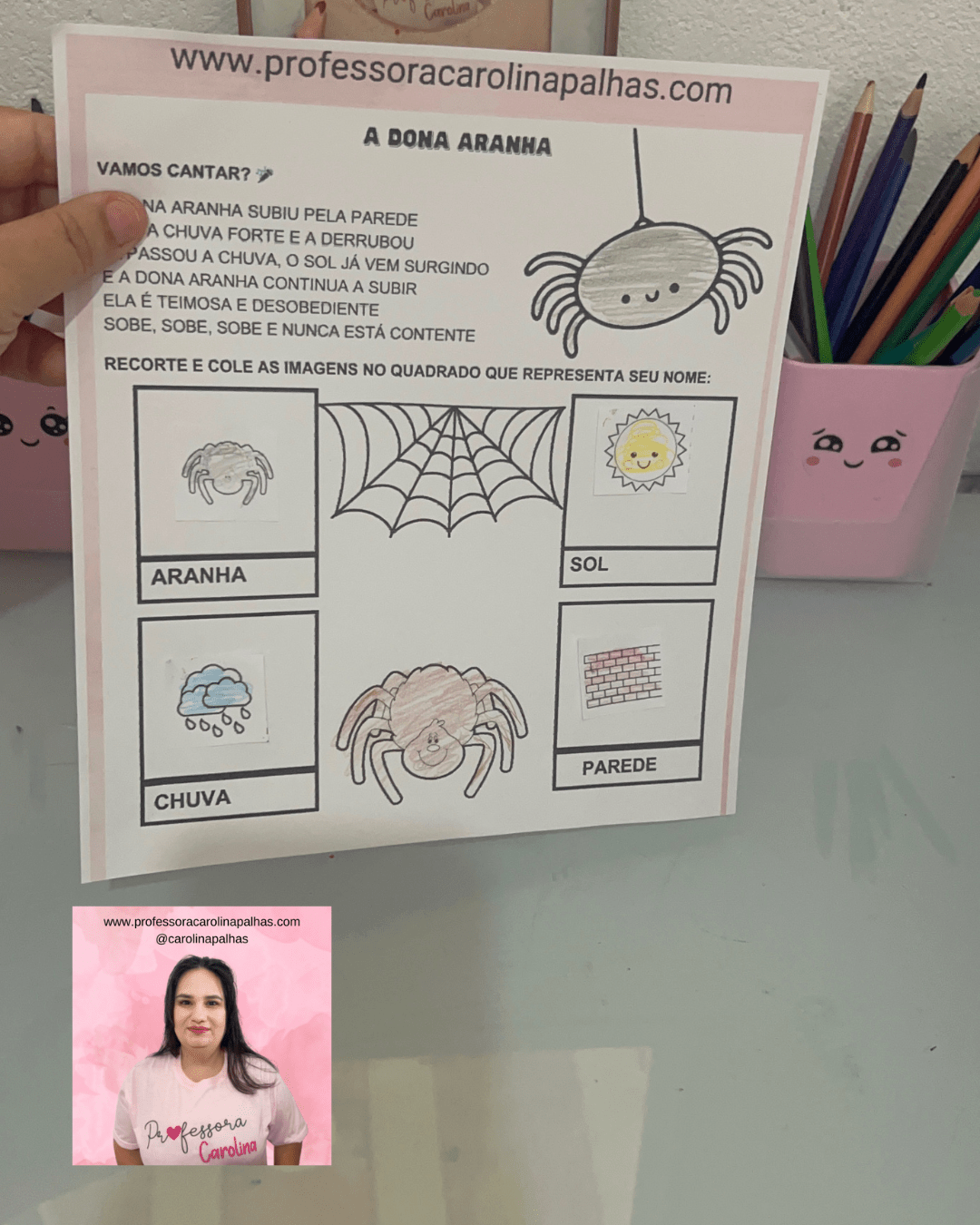 • Folhas com as imagens da aranha, chuva, sol e parede (disponíveis no final do post)