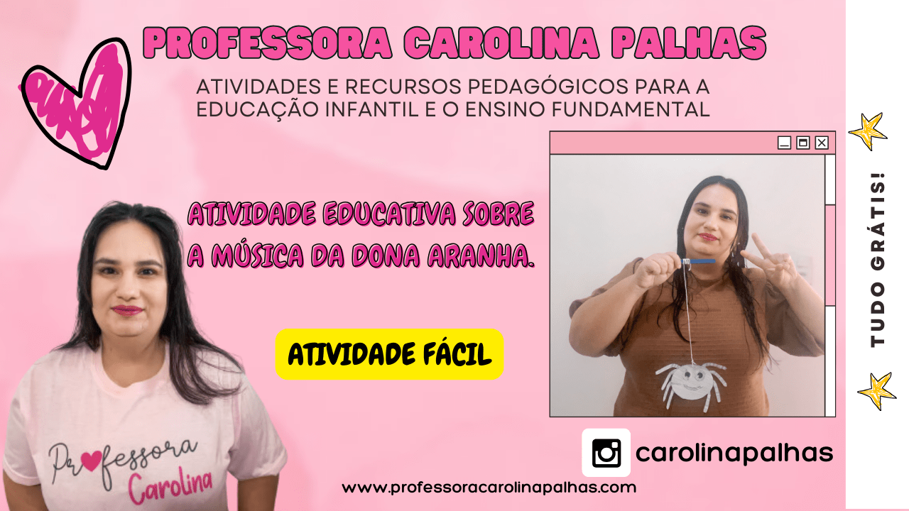 Professora Carolina Palhas é uma entusiasta da educação infantil e tecnologia. Com mais de 11 anos de experiência, ela compartilha suas ideias e planos pedagógicos em seu blog e Instagram, ajudando professores e mães a promoverem um aprendizado significativo e divertido para as crianças.