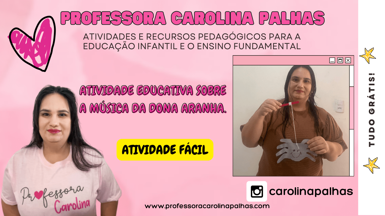 Professora Carolina Palhas é uma entusiasta da educação infantil e tecnologia. Com mais de 11 anos de experiência, ela compartilha suas ideias e planos pedagógicos em seu blog e Instagram, ajudando professores e mães a promoverem um aprendizado significativo e divertido para as crianças.