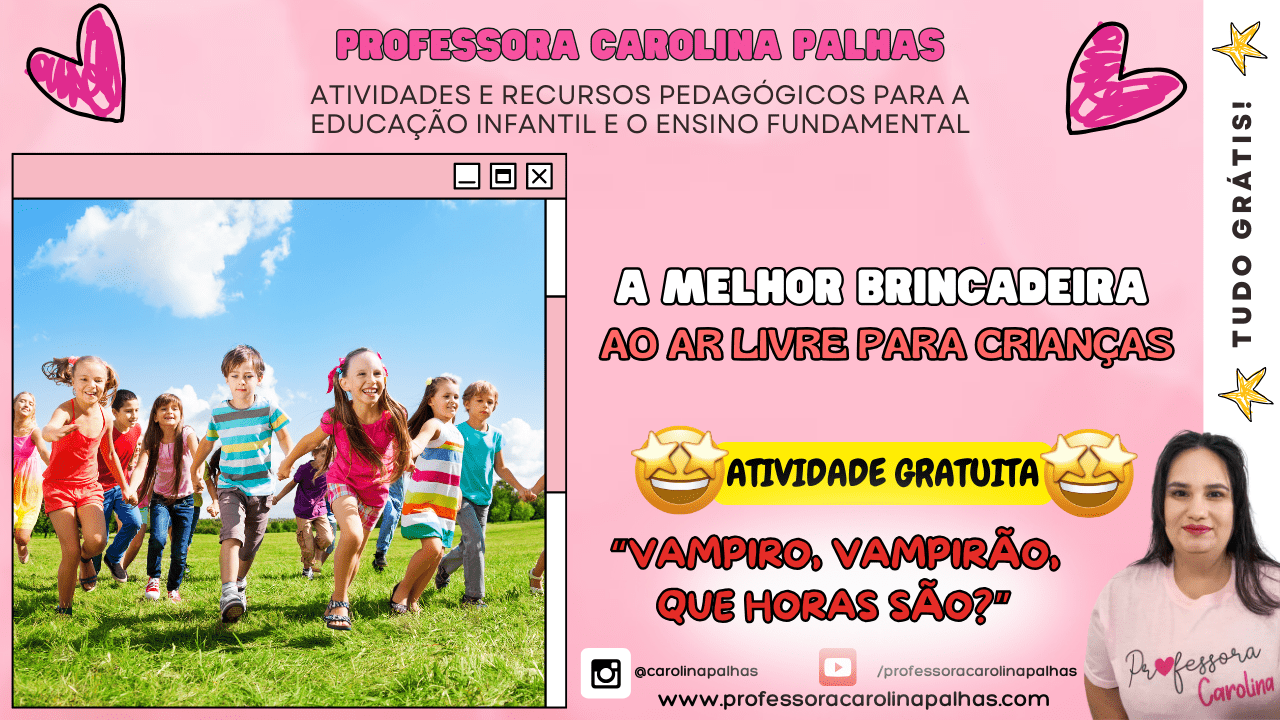 Palavras-chave: Brincadeira ao ar livre, educação infantil, dicas de brincadeira, área externa, professora Carolina, diversão na escola, desenvolvimento infantil, atividades lúdicas.