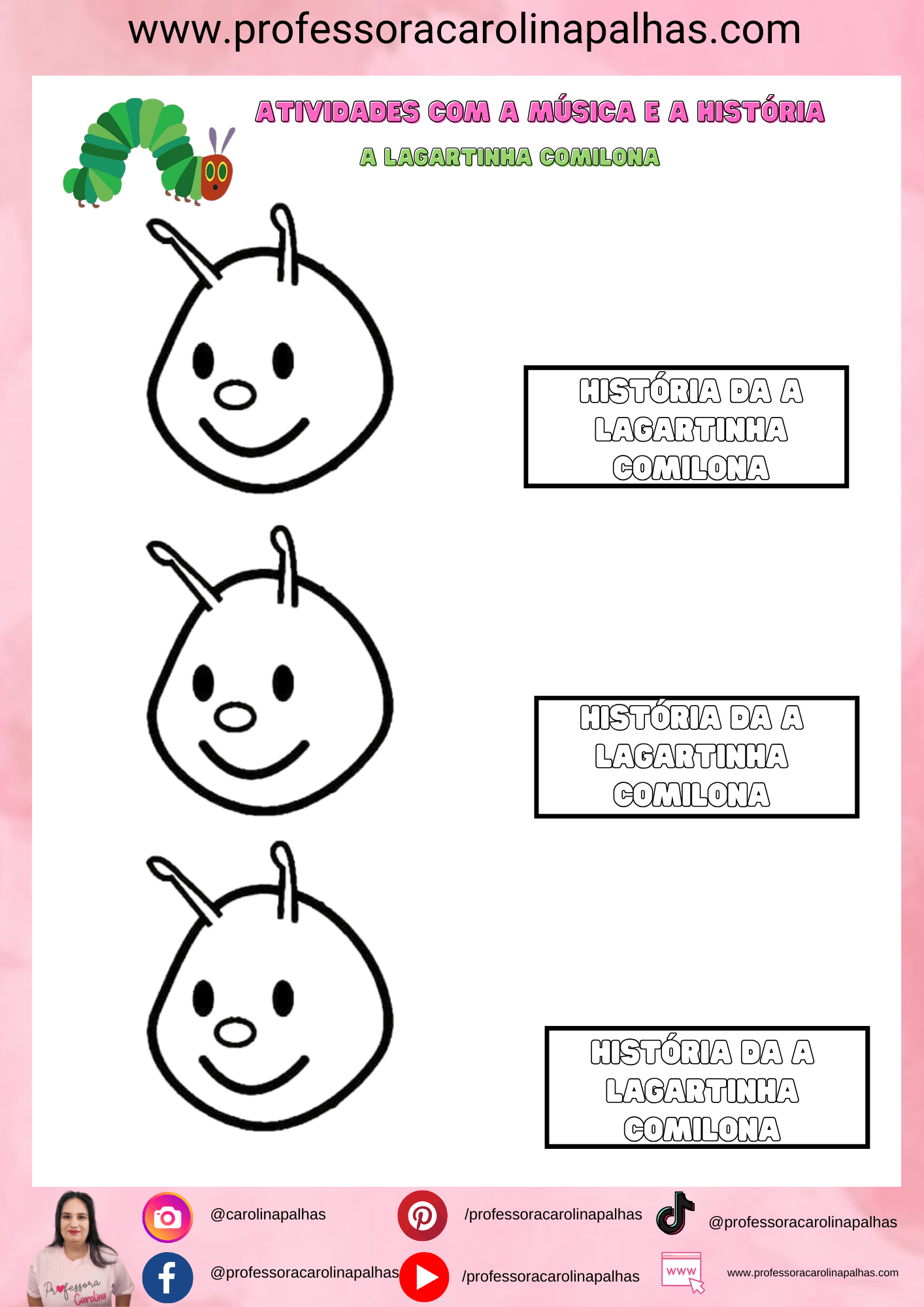 Você está em busca de uma atividade divertida e educativa para realizar com seus alunos da educação infantil? Apresentamos a sequência didática com a música “Lagartinha Comilona” e a história da lagartinha comilona, adaptada por mim, professora Carolina Palhas. Nesta sequência, combinamos música, história e atividades lúdicas para enriquecer o aprendizado das crianças.