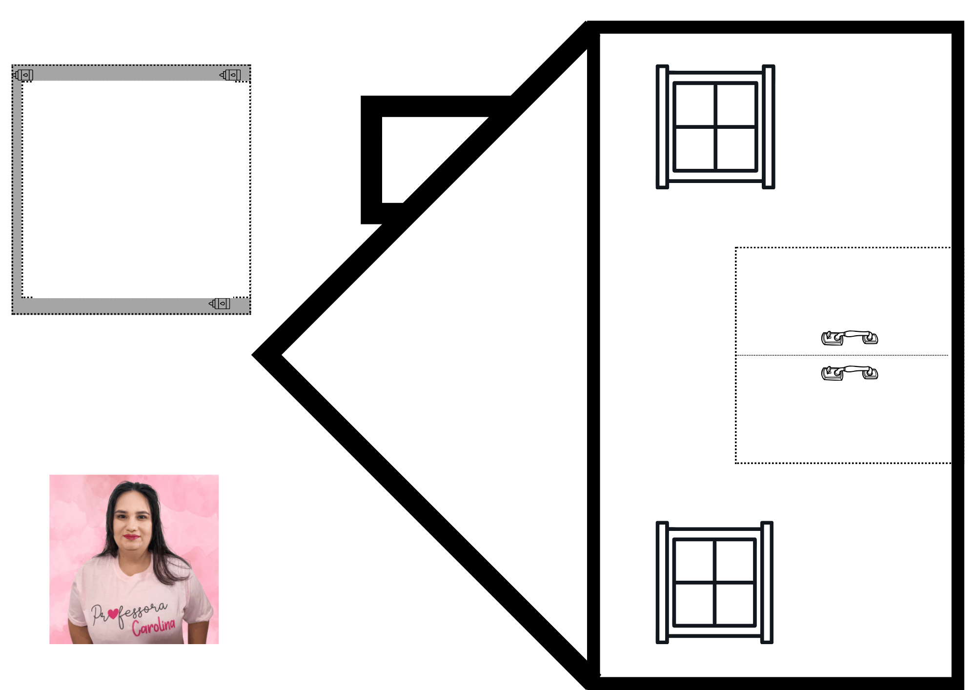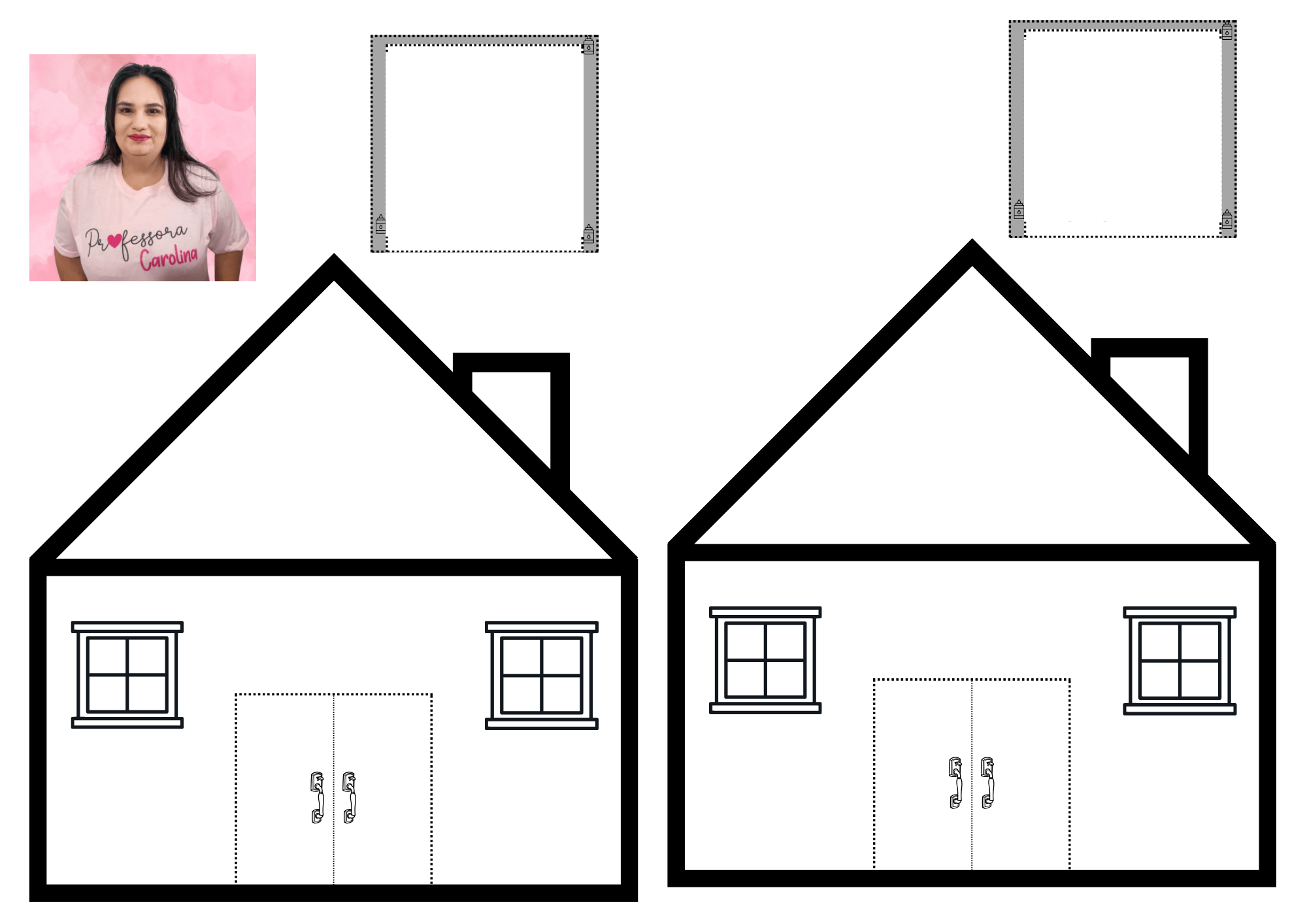 - Na mesa diversificada, entregar uma folha com uma casa com a portinha que abre e fecha e um espaço para as crianças se desenharem.