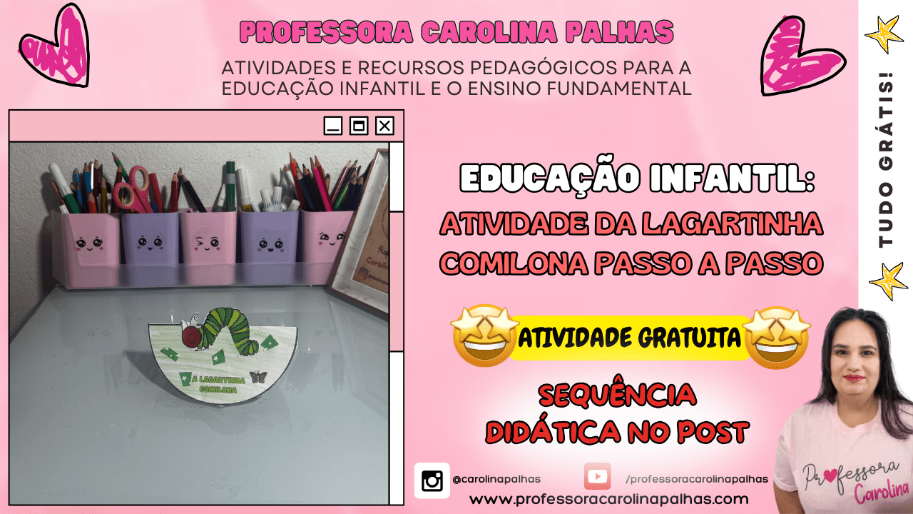 Você está em busca de uma atividade divertida e educativa para realizar com seus alunos da educação infantil? Apresentamos a sequência didática com a música “Lagartinha Comilona” e a história da lagartinha comilona, adaptada por mim, professora Carolina Palhas. Nesta sequência, combinamos música, história e atividades lúdicas para enriquecer o aprendizado das crianças.