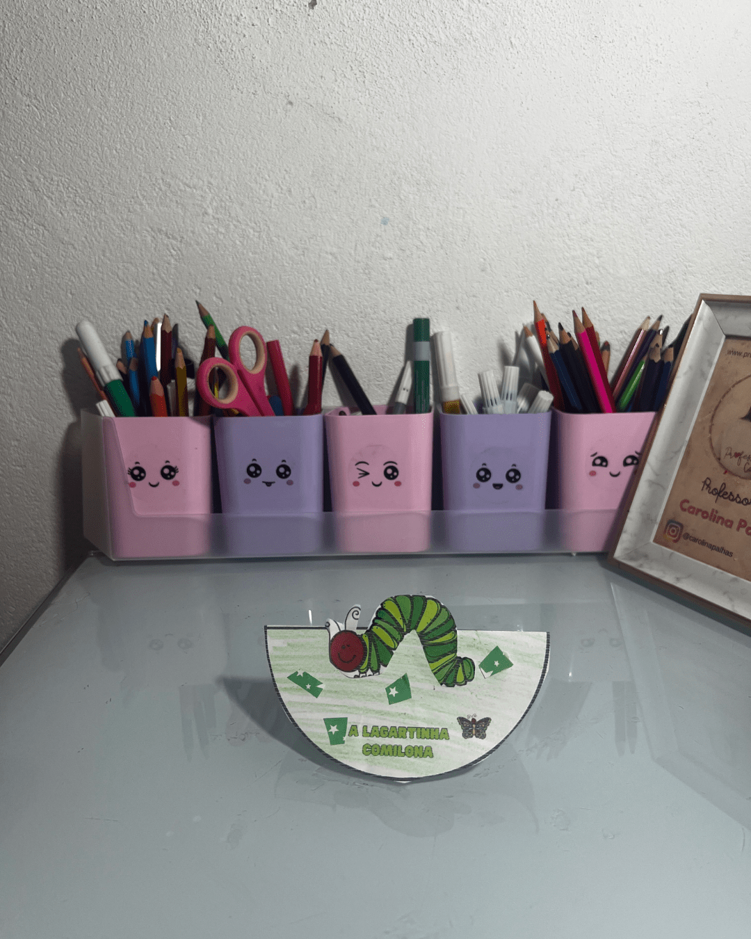 - Utilize materiais como papel, lápis de cor, e tinta para criar uma lagartinha colorida.