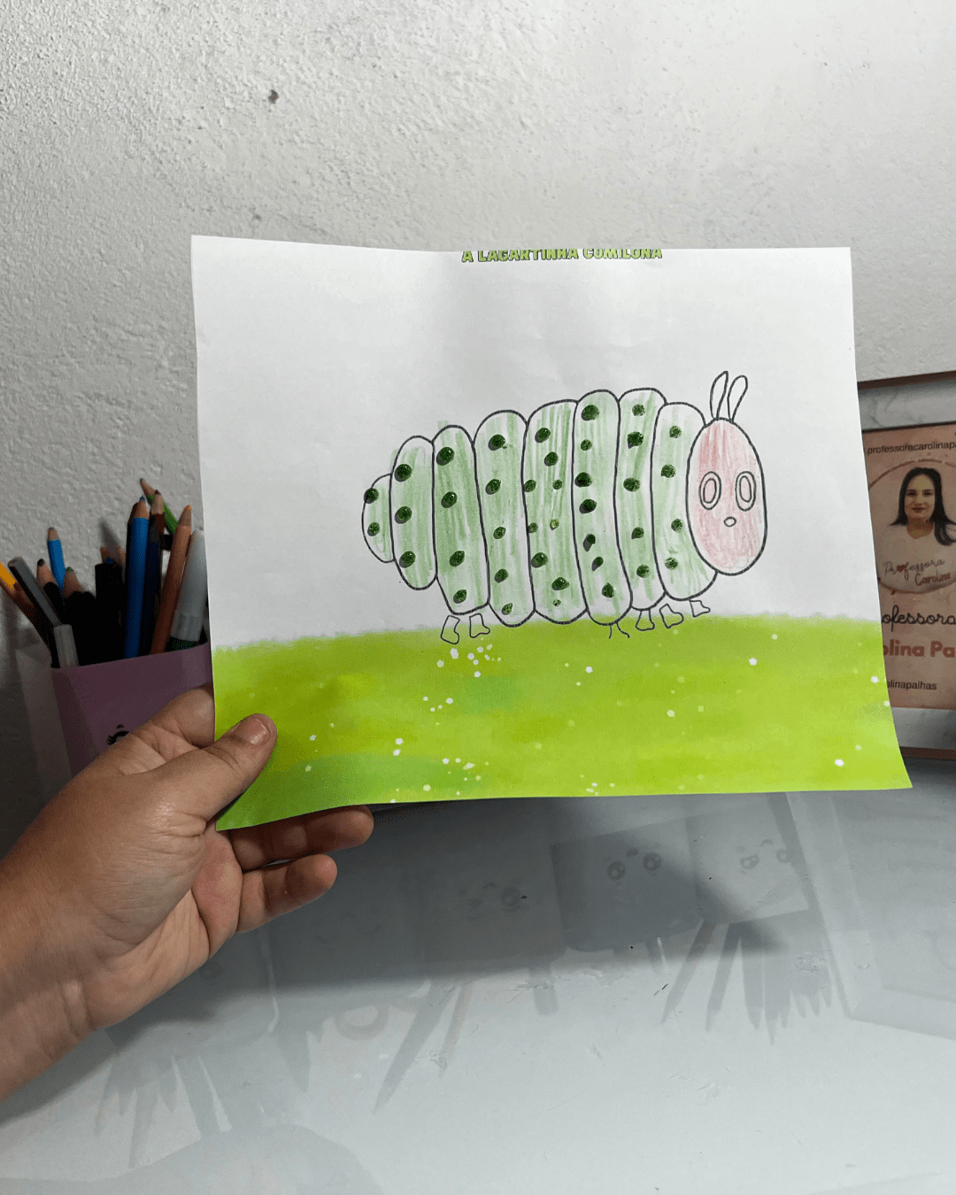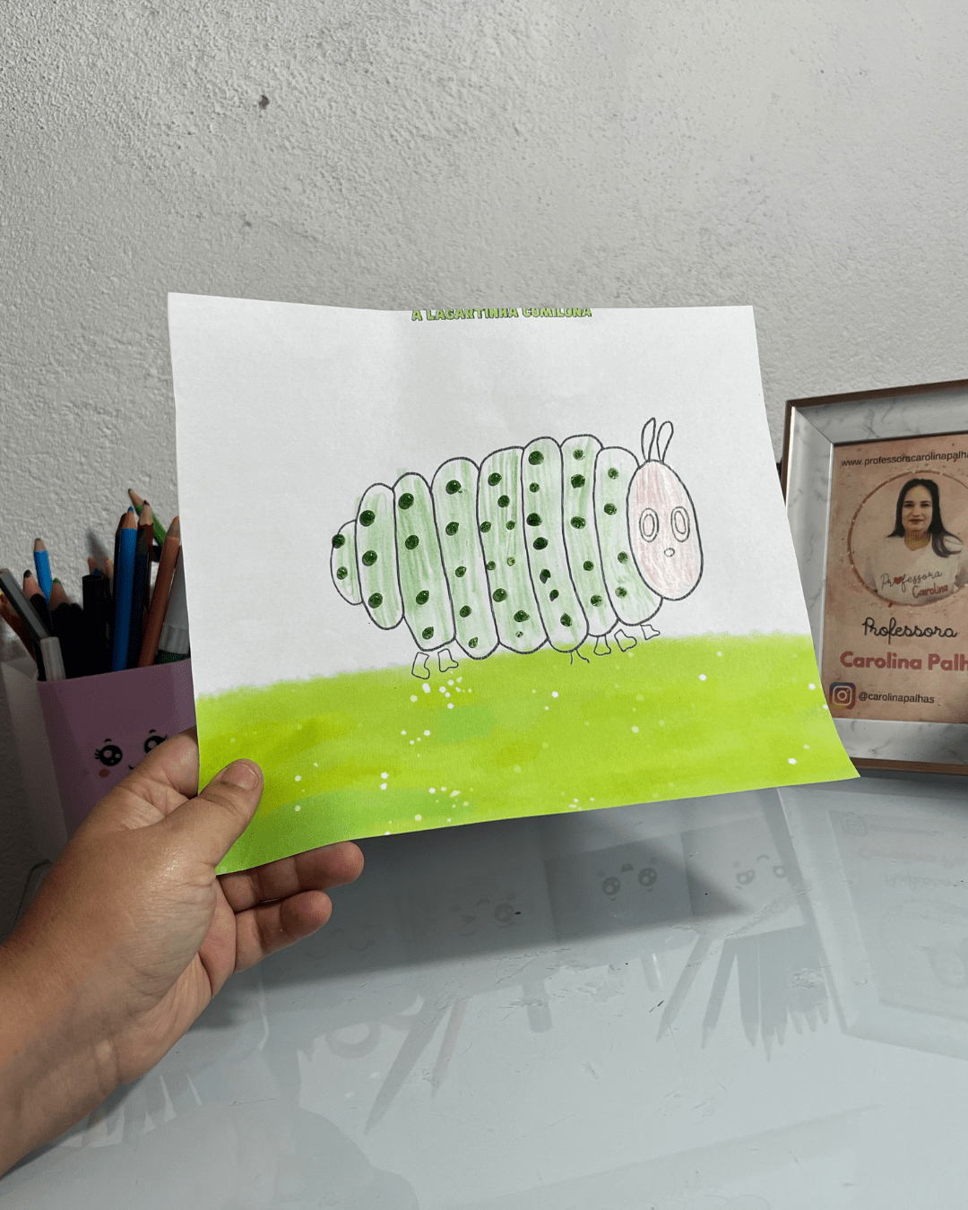 - Utilize materiais como papel, lápis de cor, e tinta para criar uma lagartinha colorida.