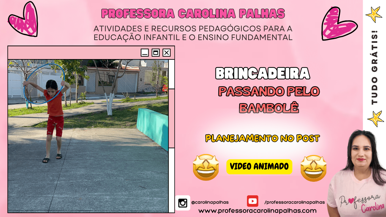 Palavras-chave: brincar ao ar livre, brincadeiras com bambolê, desenvolvimento motor, atividades físicas, educação infantil, coordenação motora, brincadeiras pedagógicas, BNCC, habilidades motoras, criatividade infantil