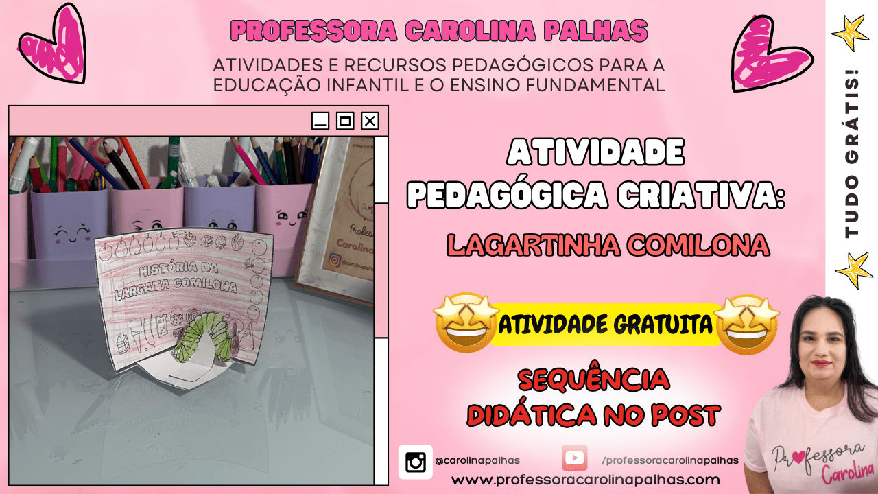 Você está em busca de uma atividade divertida e educativa para realizar com seus alunos da educação infantil? Apresentamos a sequência didática com a música “Lagartinha Comilona” e a história da lagartinha comilona, adaptada por mim, professora Carolina Palhas. Nesta sequência, combinamos música, história e atividades lúdicas para enriquecer o aprendizado das crianças.