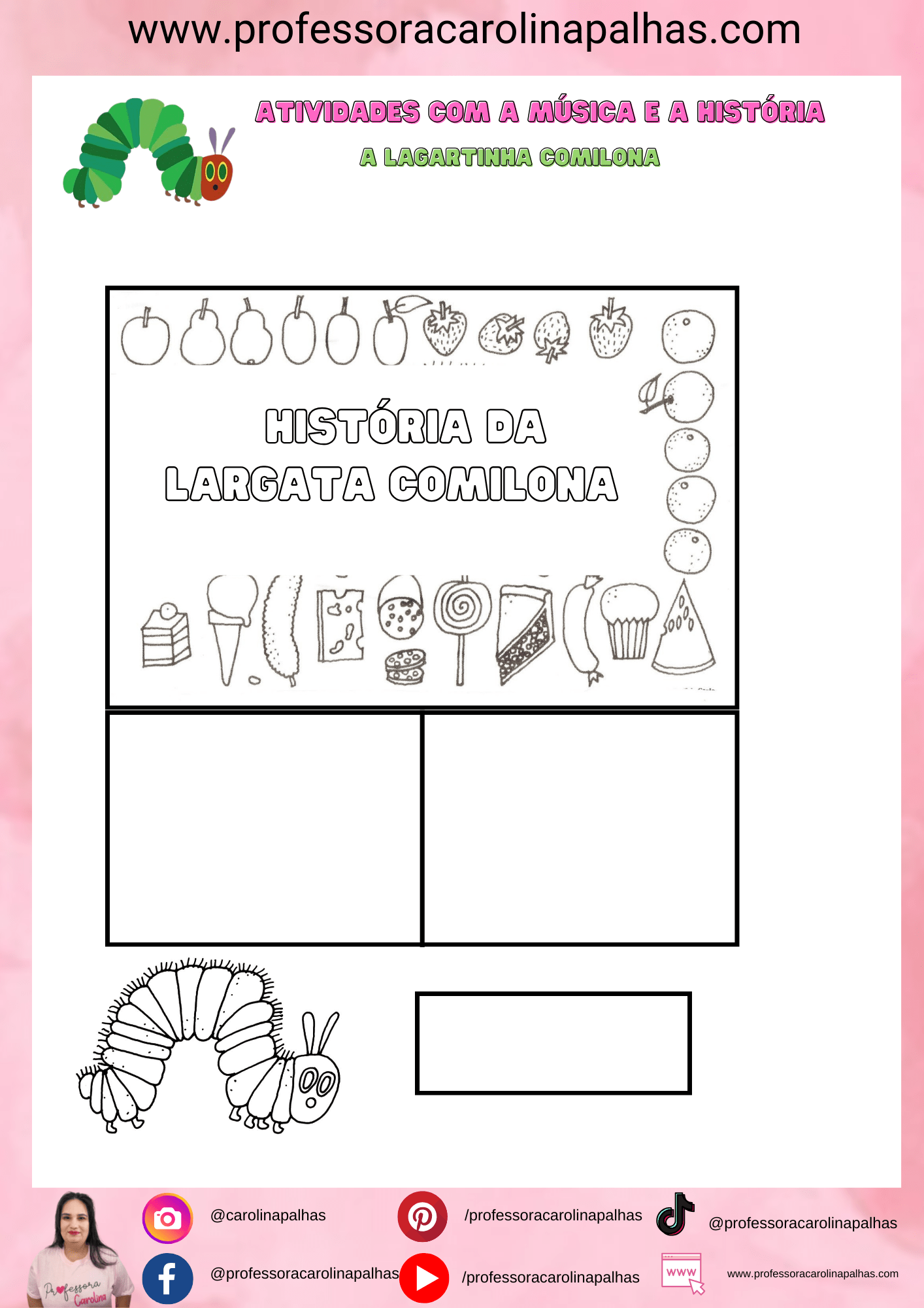 Palavras-chave: Lagartinha Comilona, atividade infantil, música educativa, história infantil, educação infantil, BNCC, sequência didática, desenvolvimento infantil, aprendizagem lúdica, professora Carolina Palhas