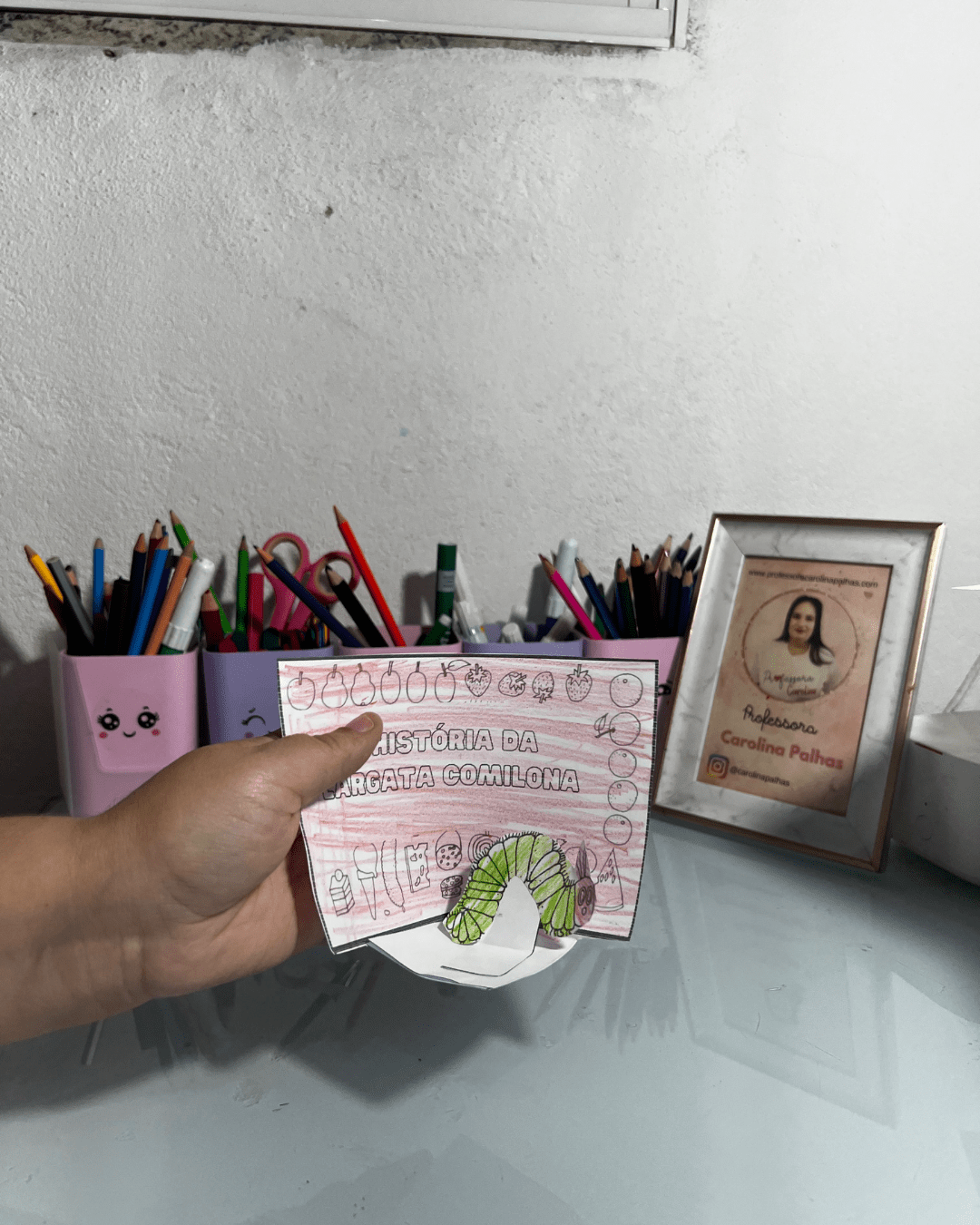 - Utilize materiais como papel, lápis de cor, e tinta para criar uma lagartinha colorida.