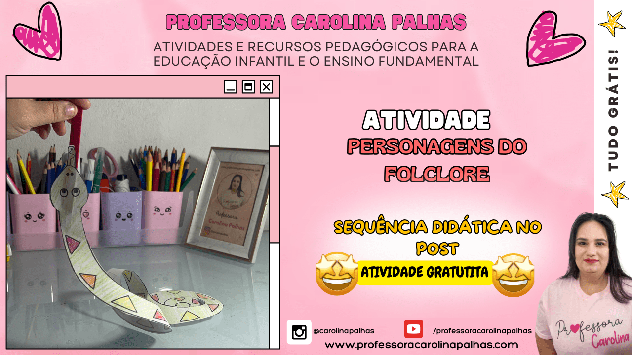 • Texto: “Conheça a lenda do Boitatá com essa atividade incrível. As crianças podem montar e personalizar sua própria cobra de fogo enquanto aprendem sobre essa figura do folclore. Sequência didática disponível no post, atividade gratuita!”