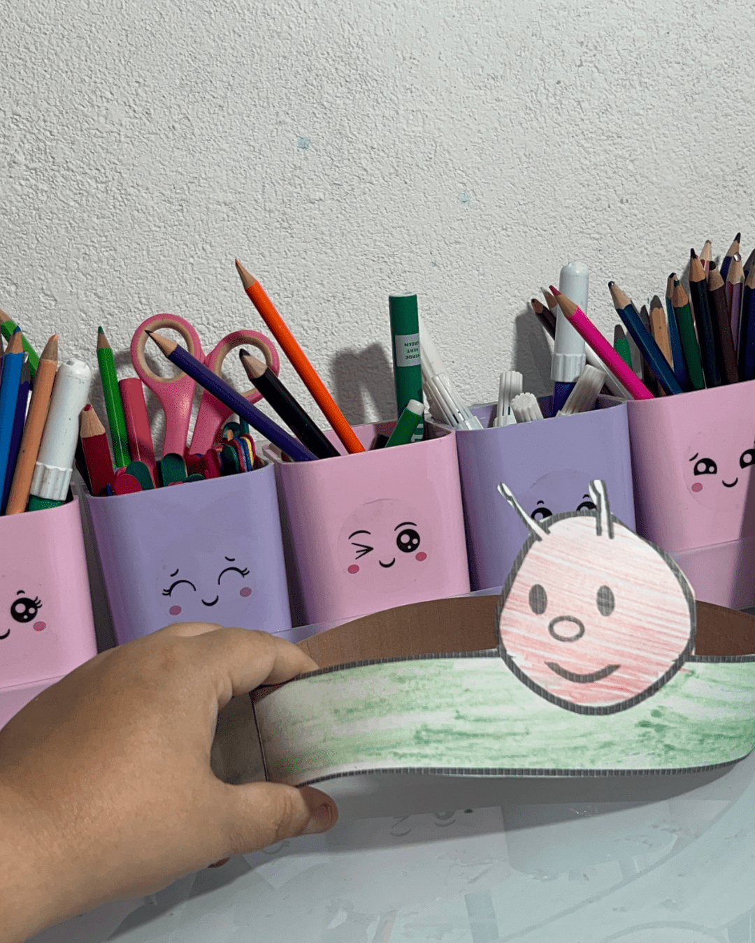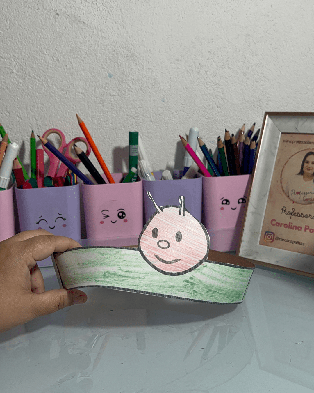 - Utilize materiais como papel, lápis de cor, e tinta para criar uma lagartinha colorida.