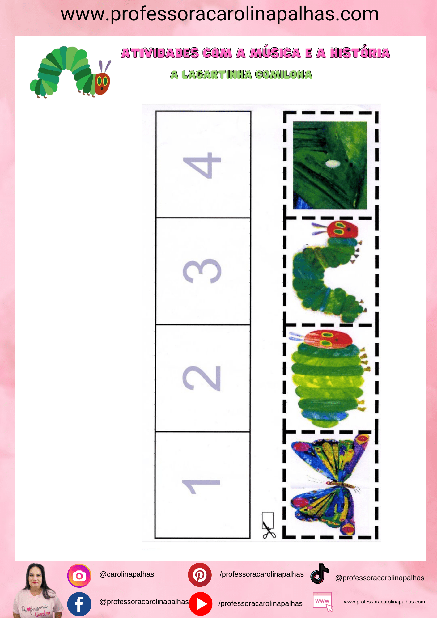 Você está em busca de uma atividade divertida e educativa para realizar com seus alunos da educação infantil? Apresentamos a sequência didática com a música “Lagartinha Comilona” e a história da lagartinha comilona, adaptada por mim, professora Carolina Palhas. Nesta sequência, combinamos música, história e atividades lúdicas para enriquecer o aprendizado das crianças.