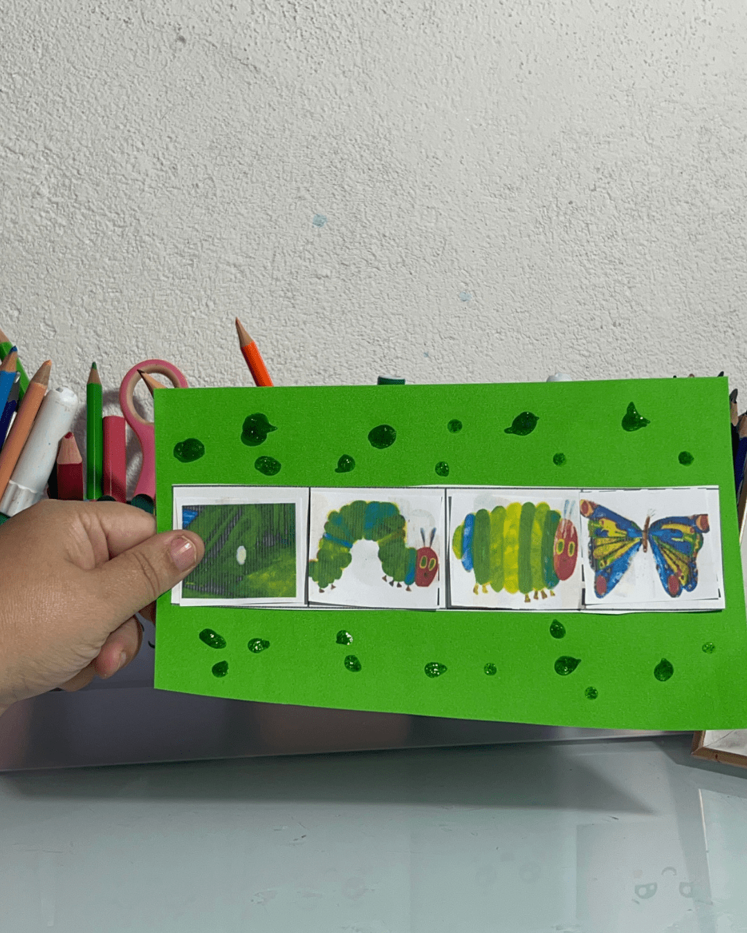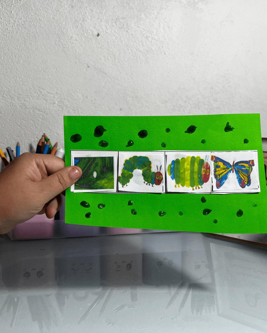 - Utilize materiais como papel, lápis de cor, e tinta para criar uma lagartinha colorida.