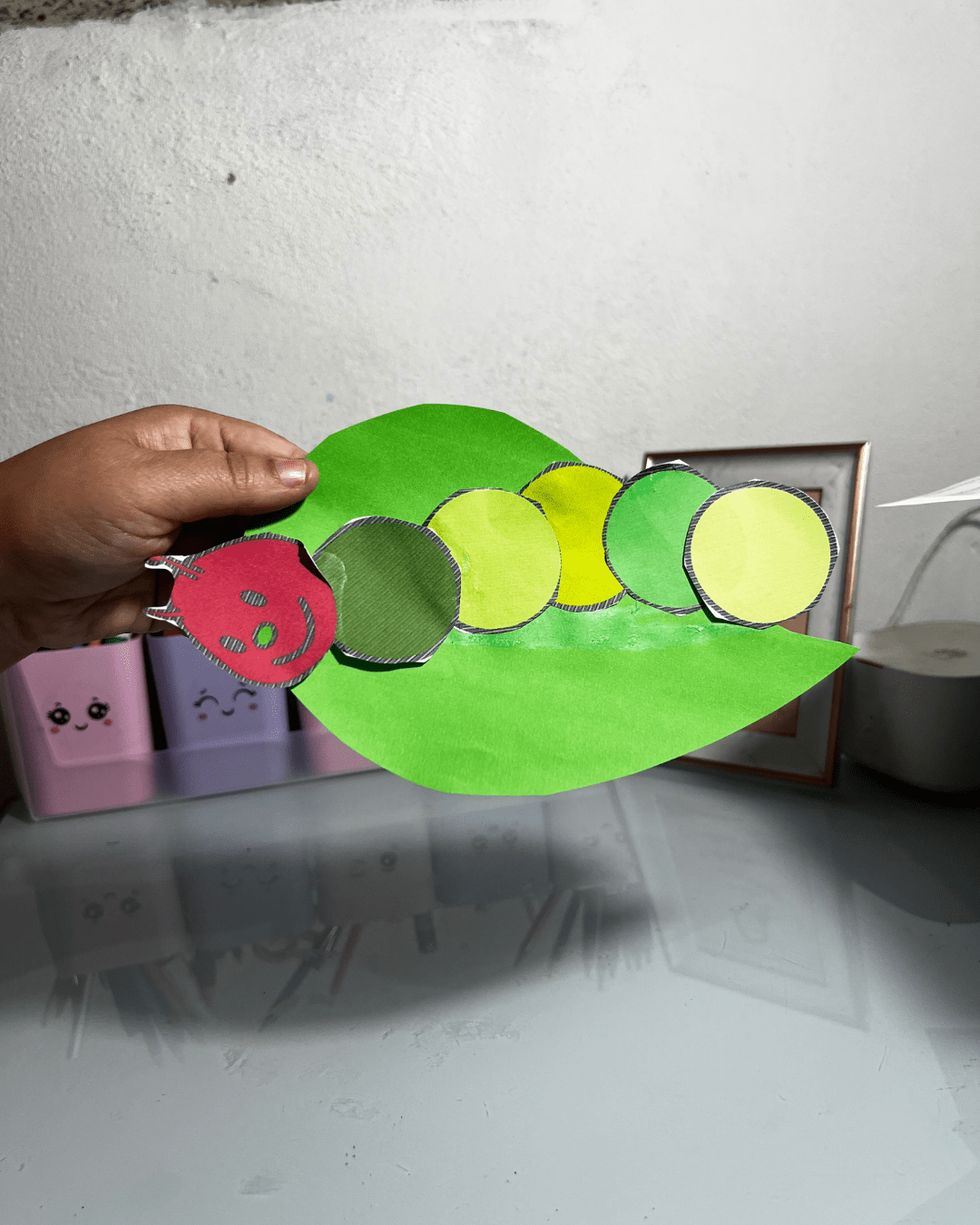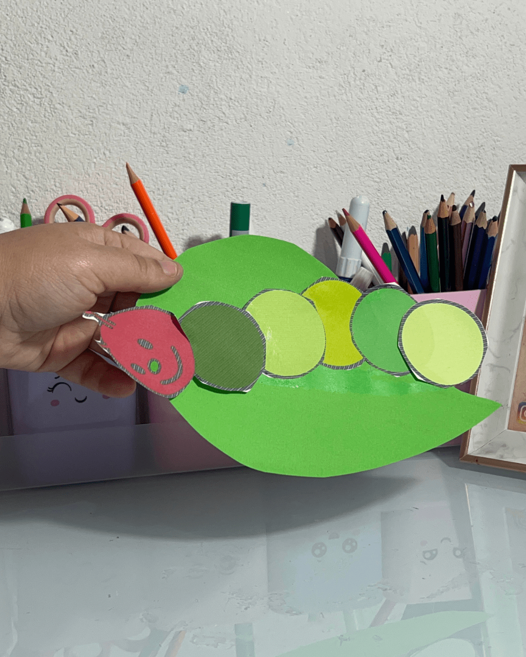 - Utilize materiais como papel, lápis de cor, e tinta para criar uma lagartinha colorida.