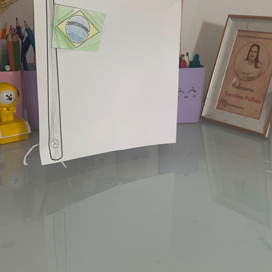Utilizando papel colorido, as crianças irão criar uma bandeira do Brasil que poderá ser movimentada em um suporte (como mostrado na imagem). Incentive-as a decorar com cores e enfeites.- Campo de Experiência: Traços, sons, cores e formas.